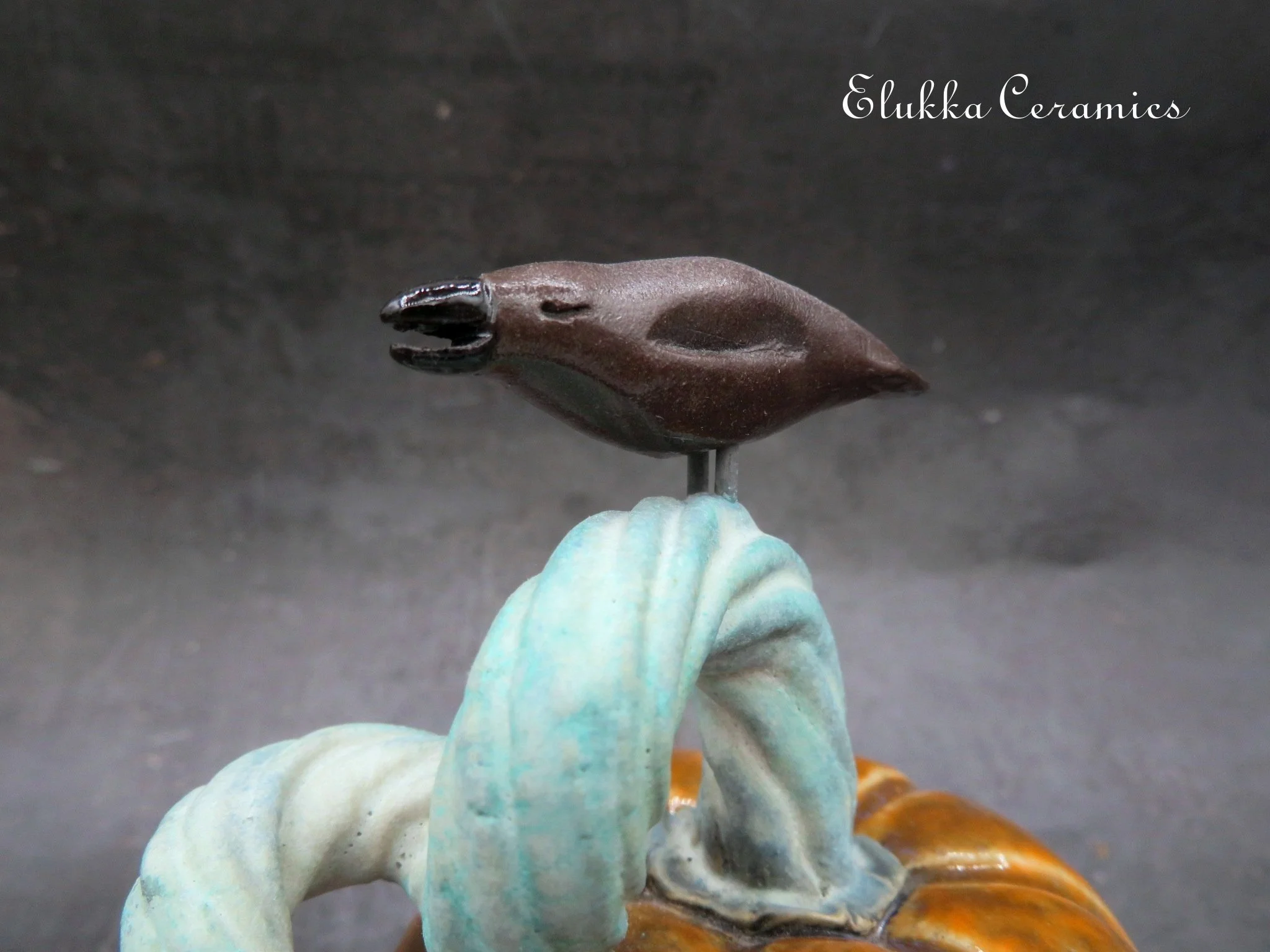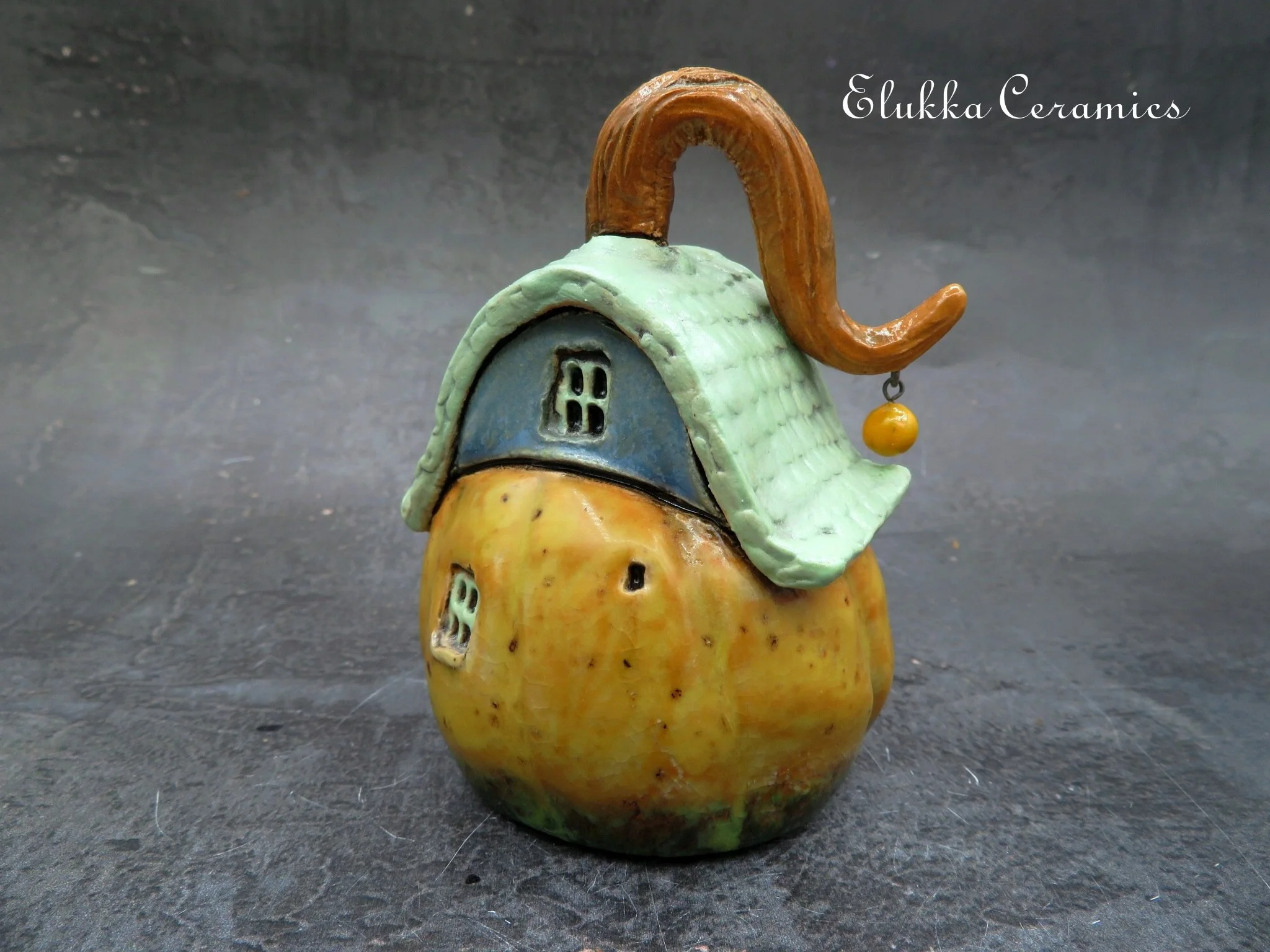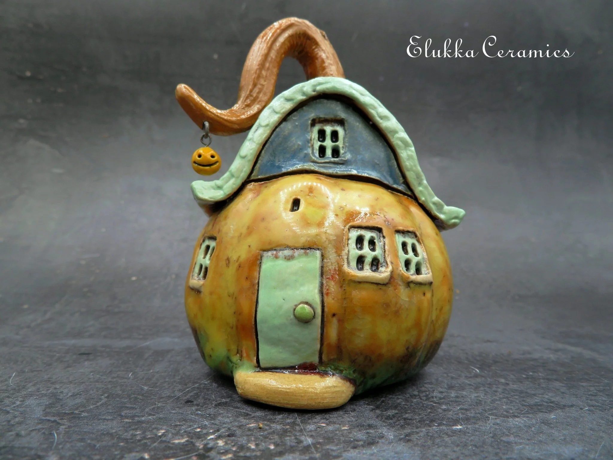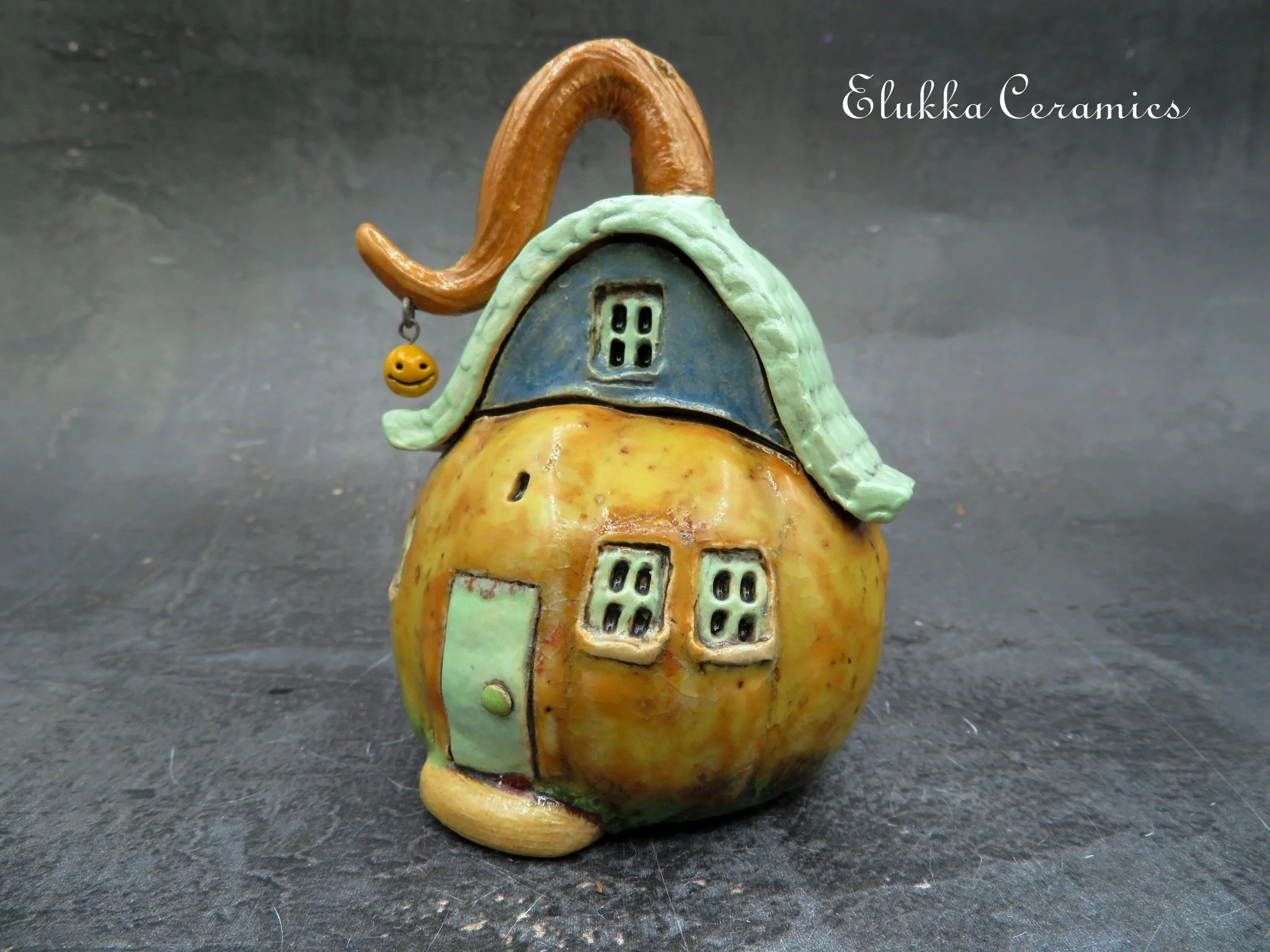 Add a touch of autumn magic to your home with this handcrafted ceramic pumpkin cottage.