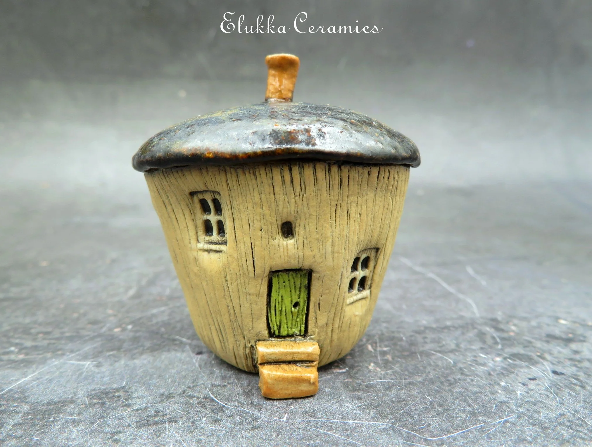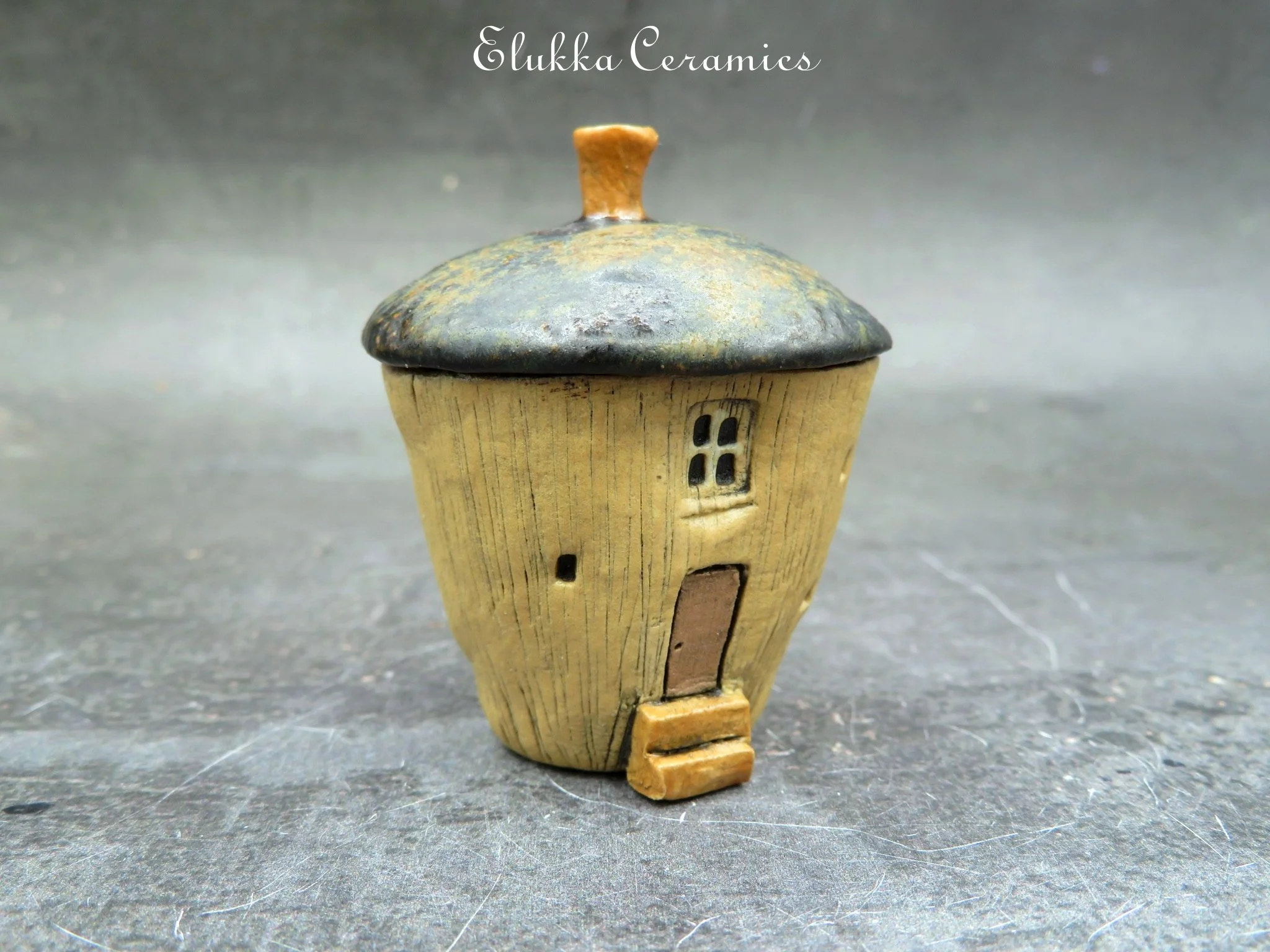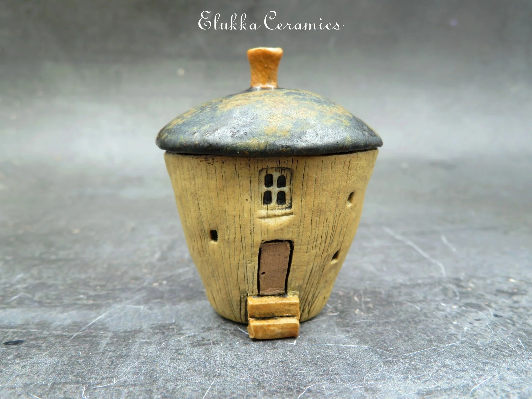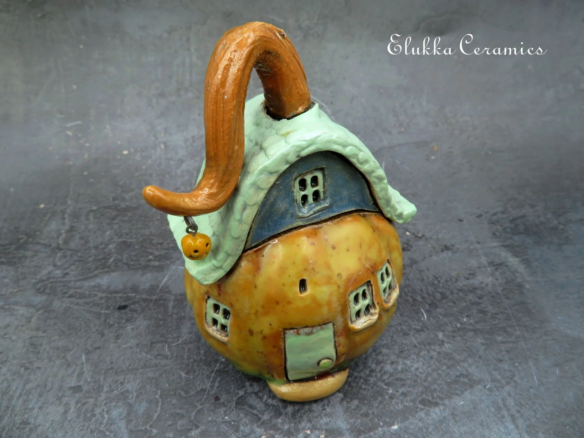 Pumpkin Cottage #6...Large Ceramic Incense Burner House by elukka