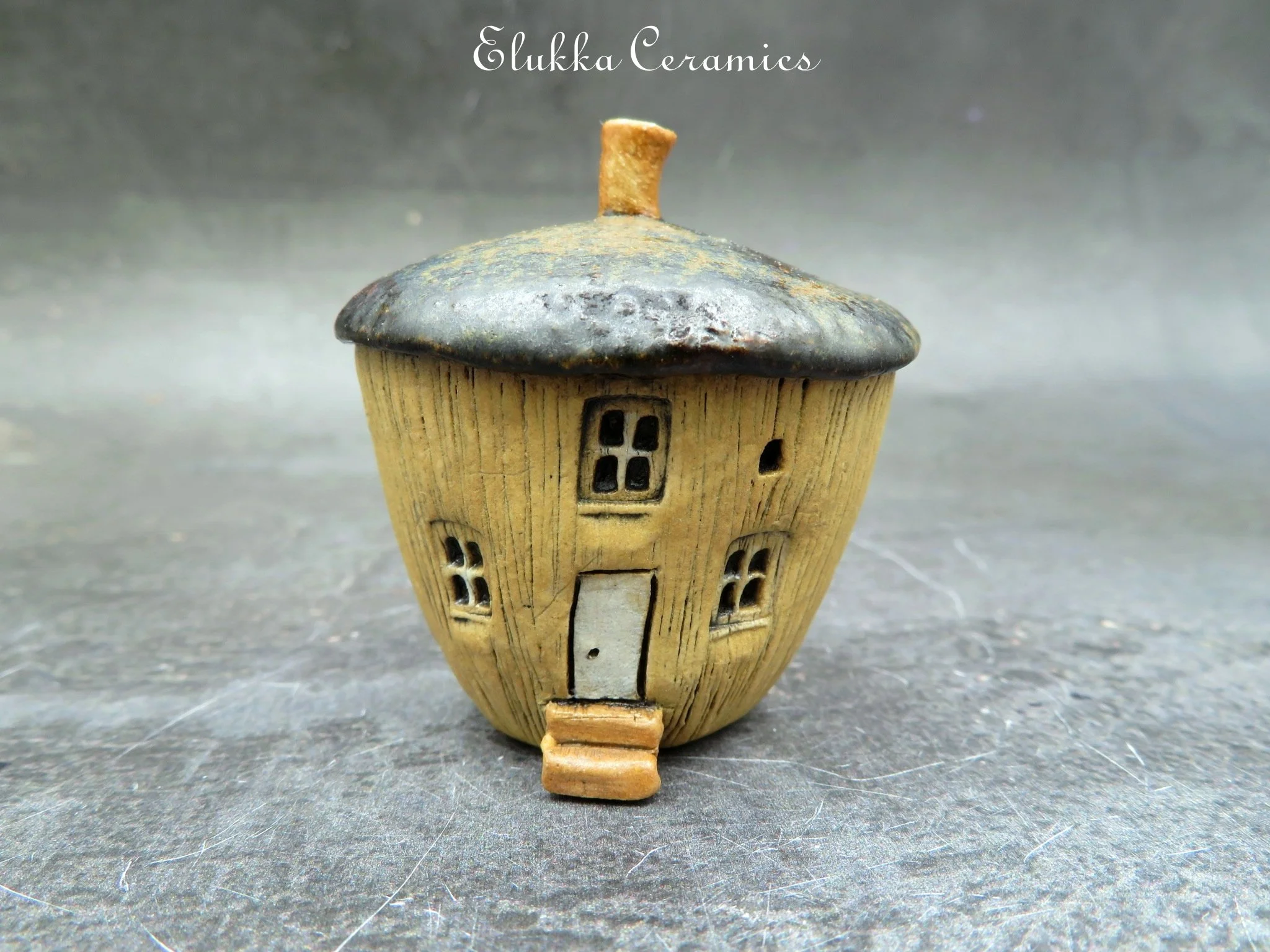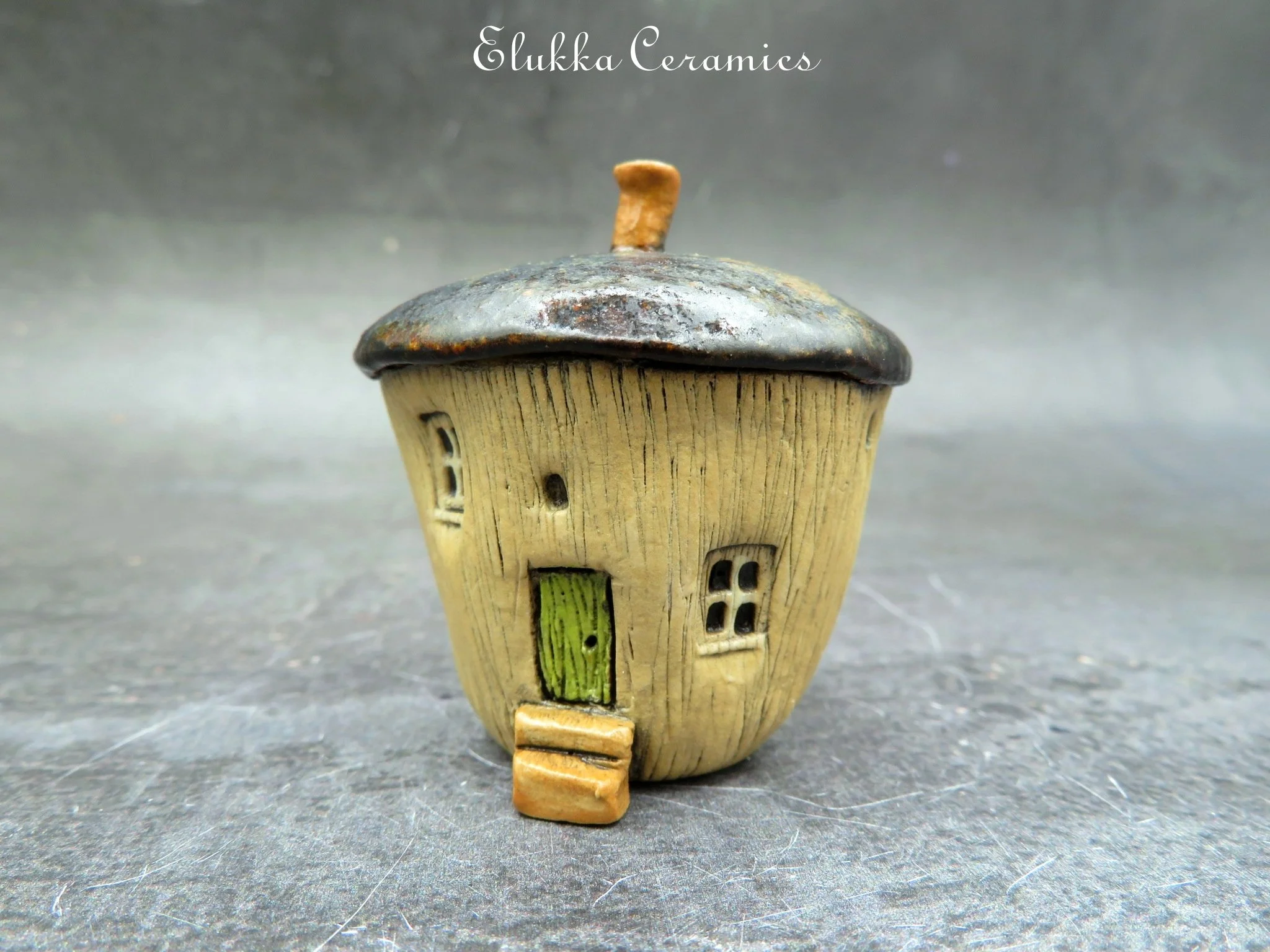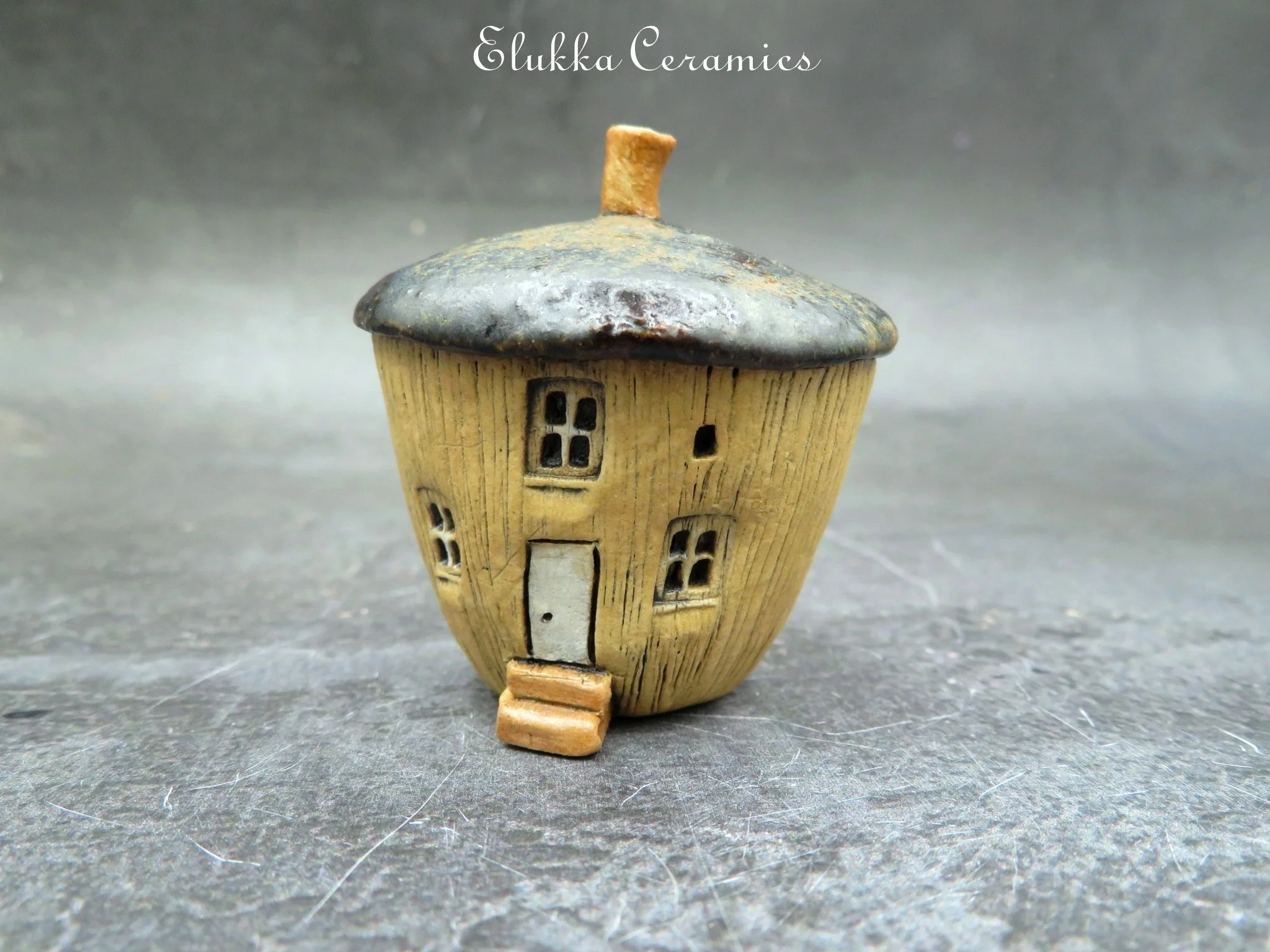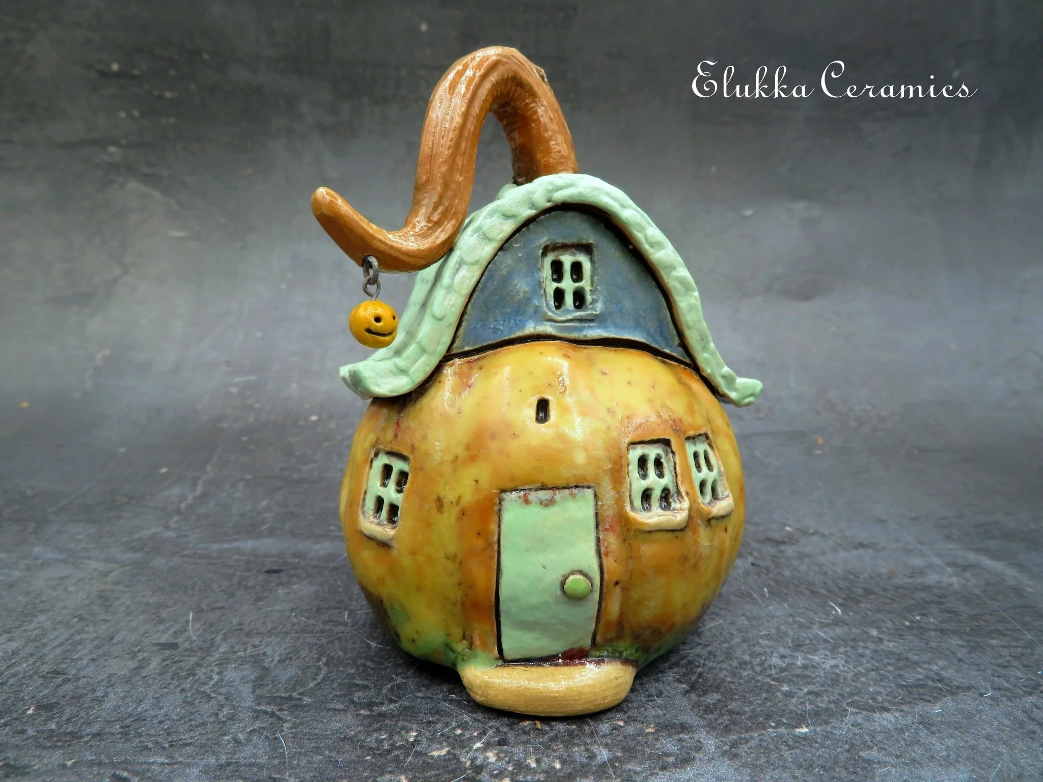 Pumpkin Cottage #6...Large Ceramic Incense Burner House by elukka