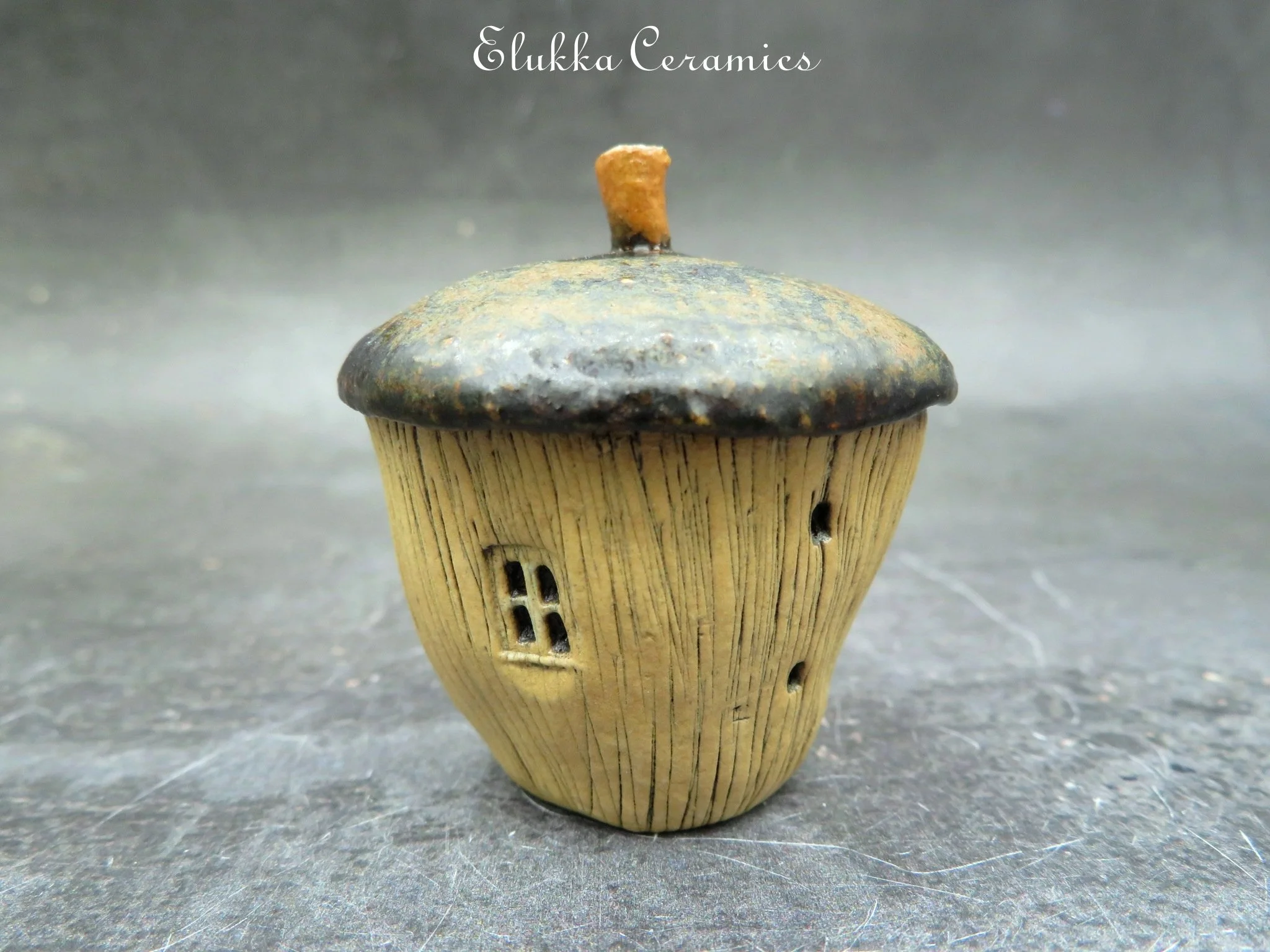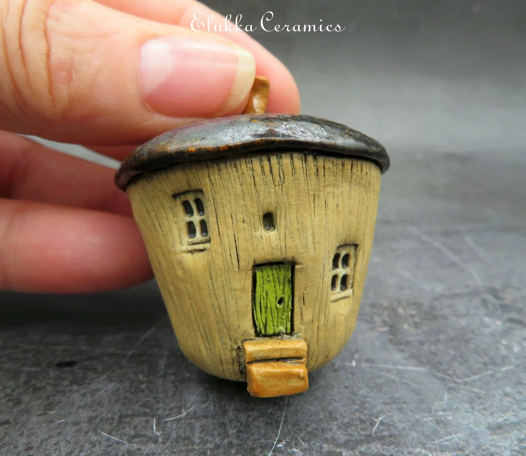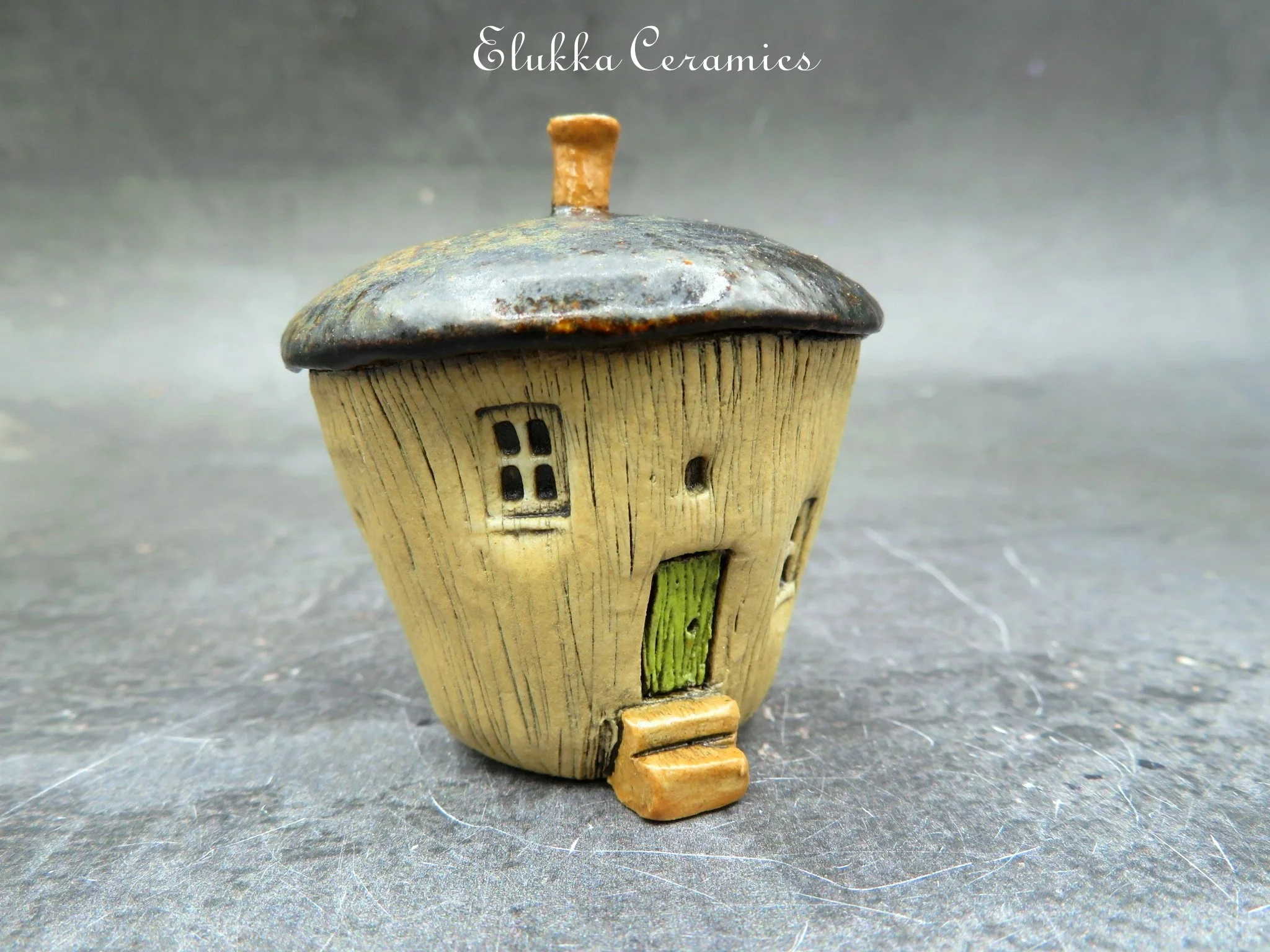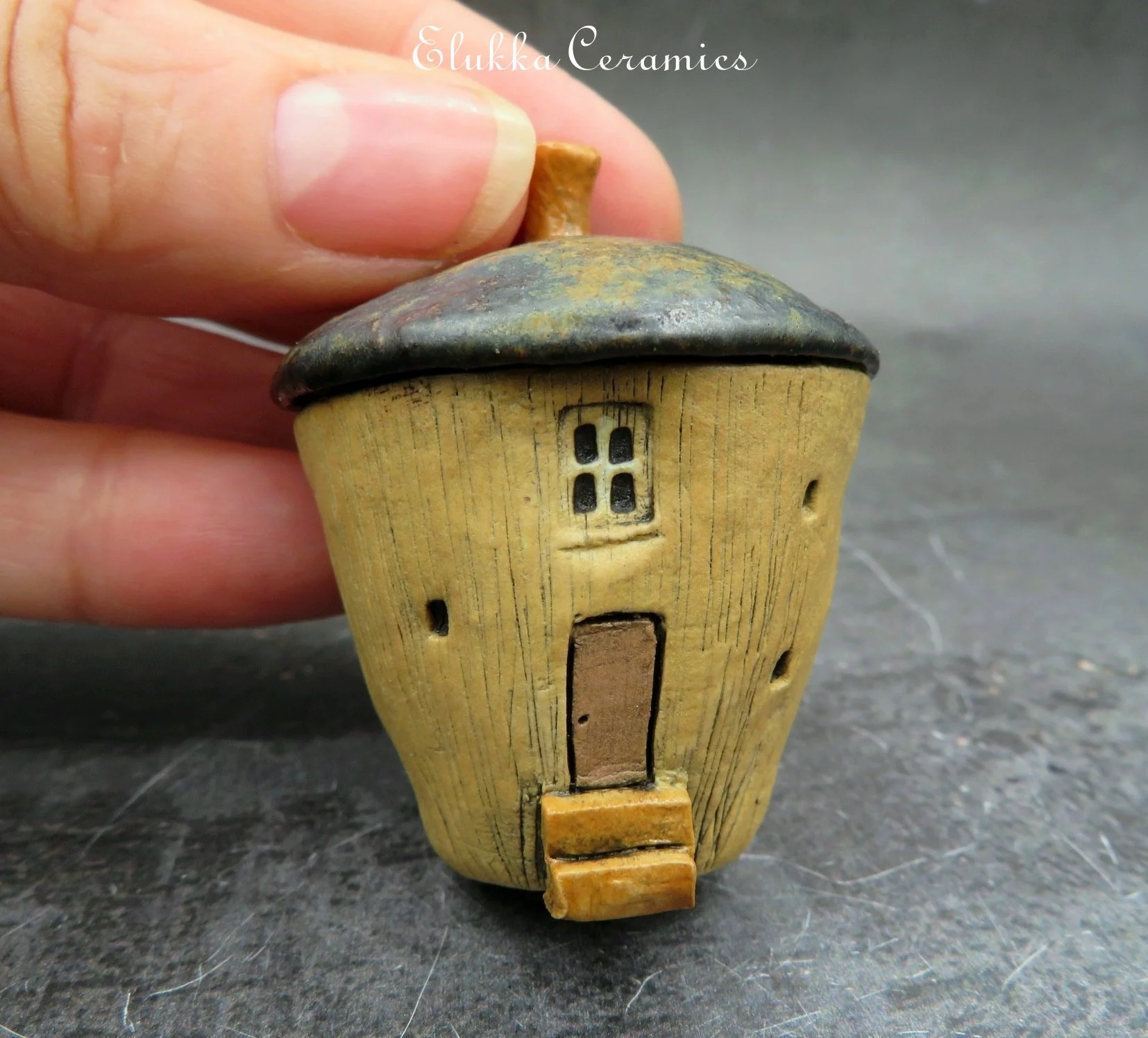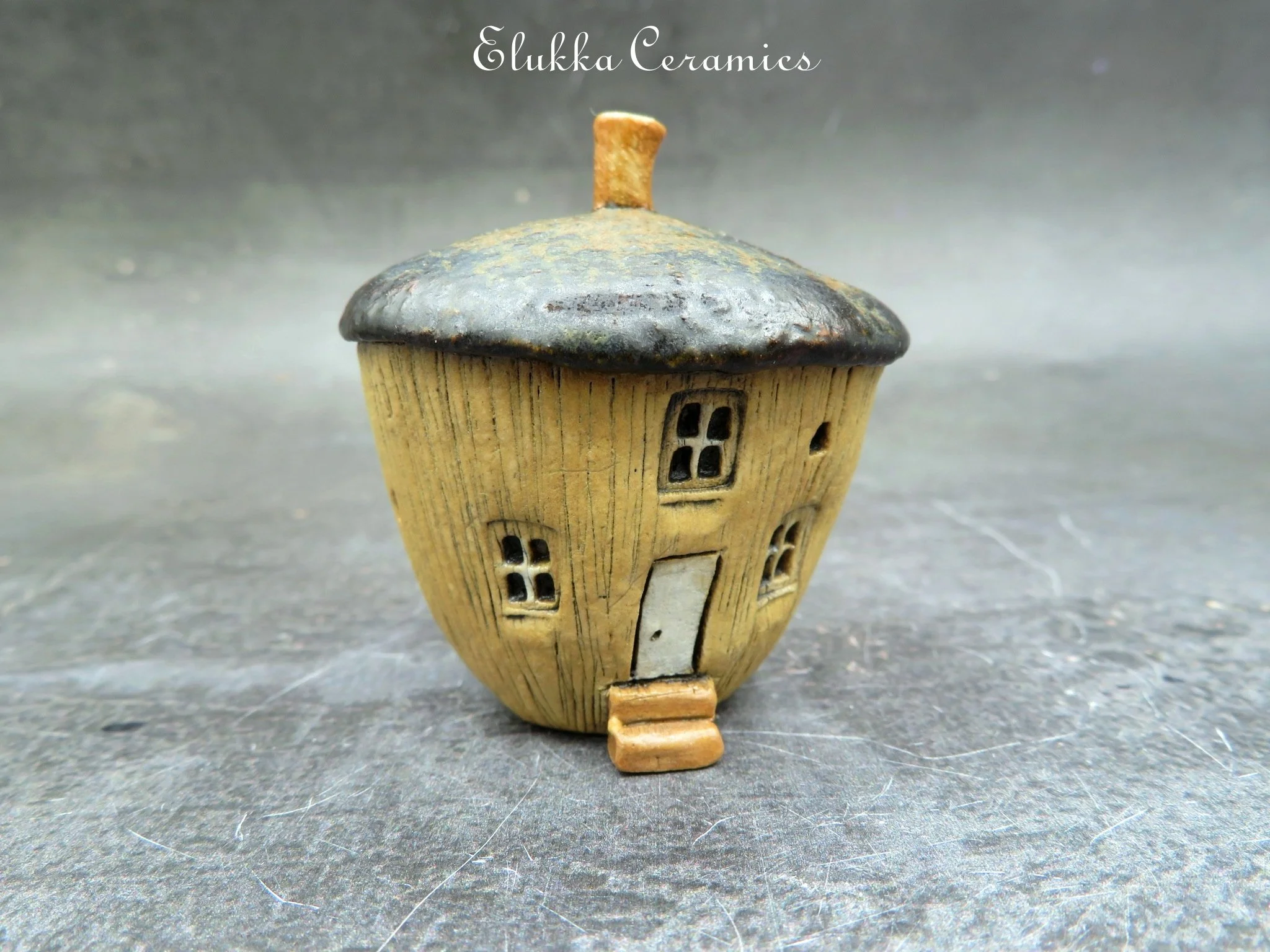 Pumpkin Cottage #6...Large Ceramic Incense Burner House by elukka
