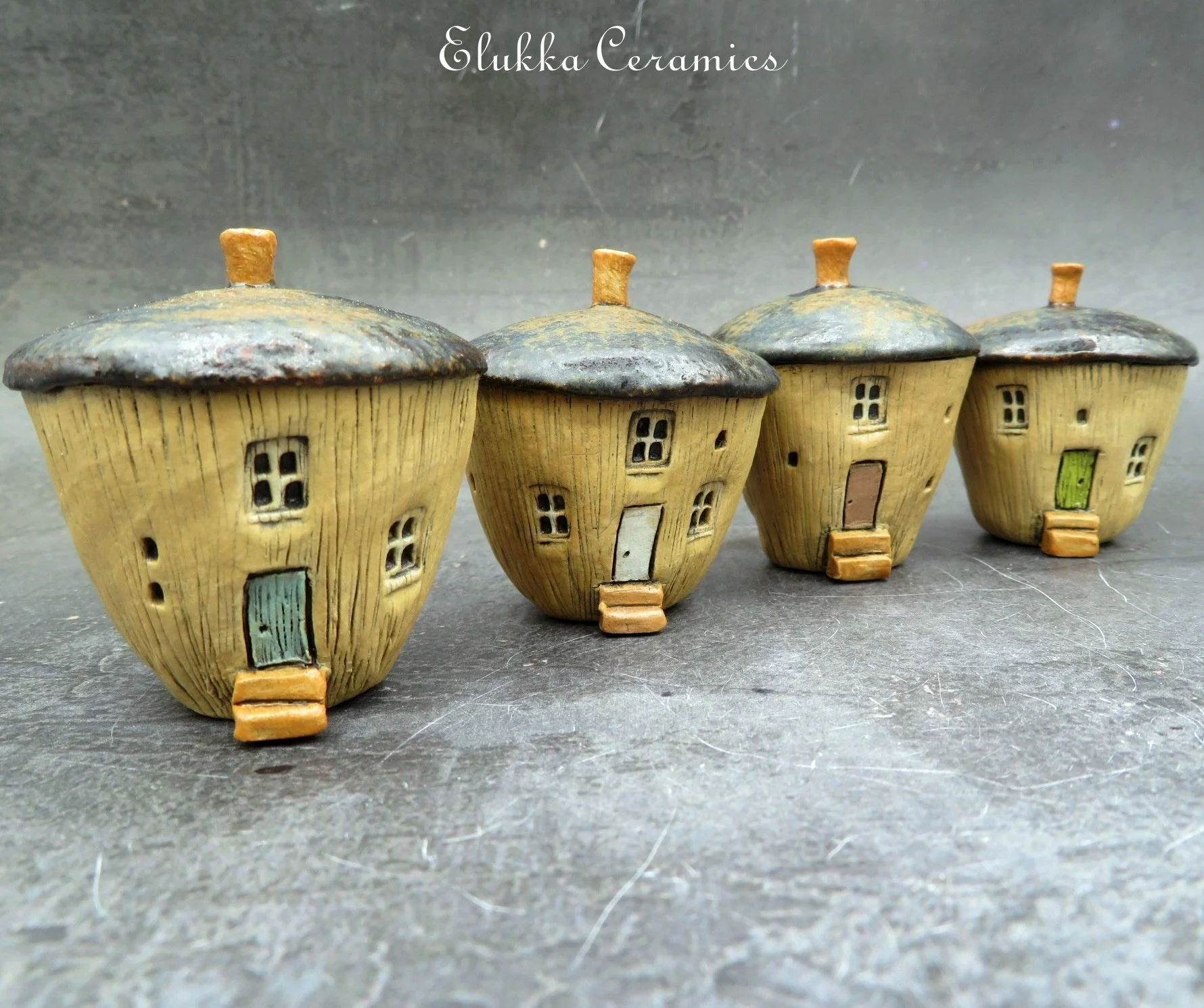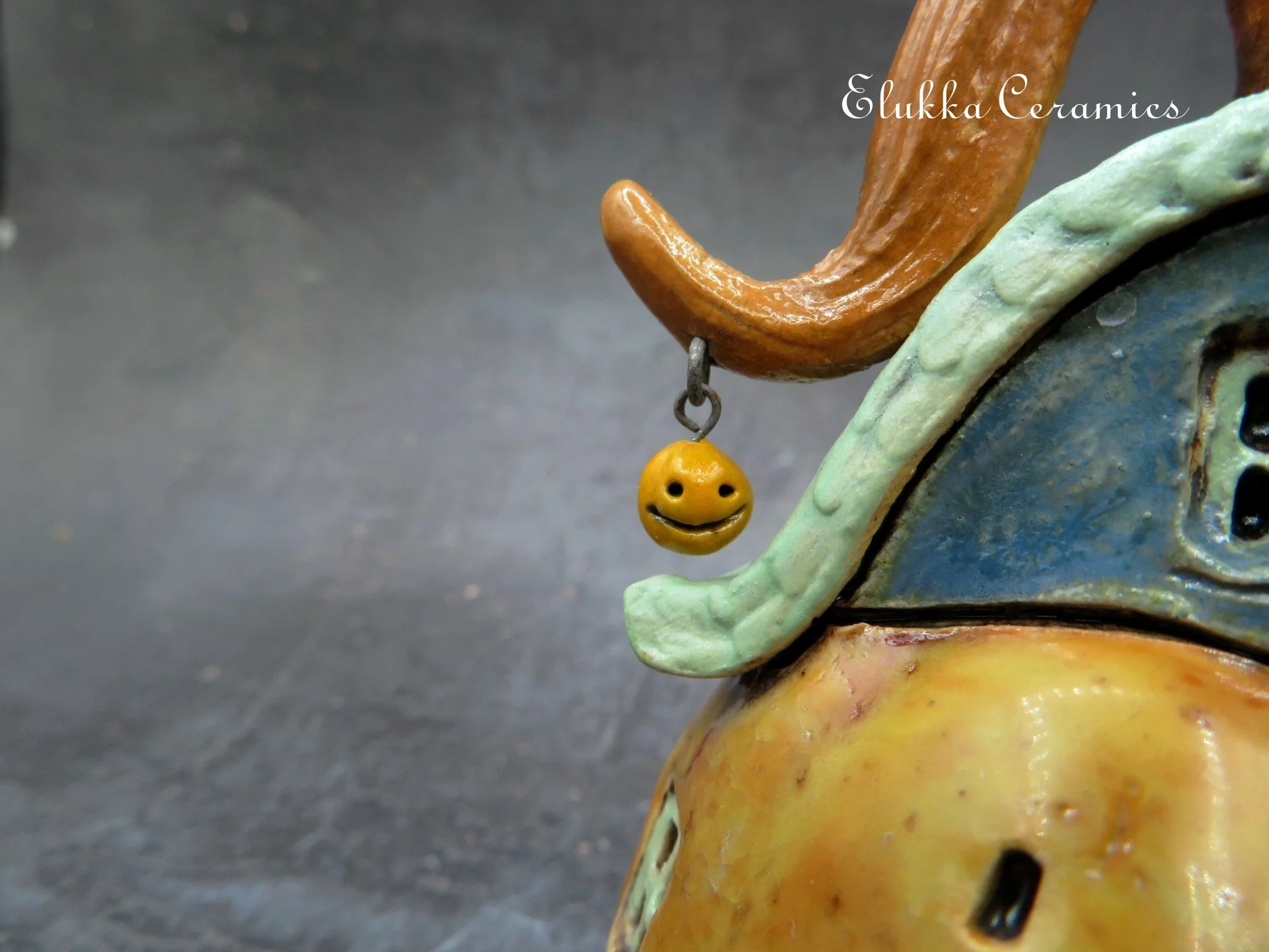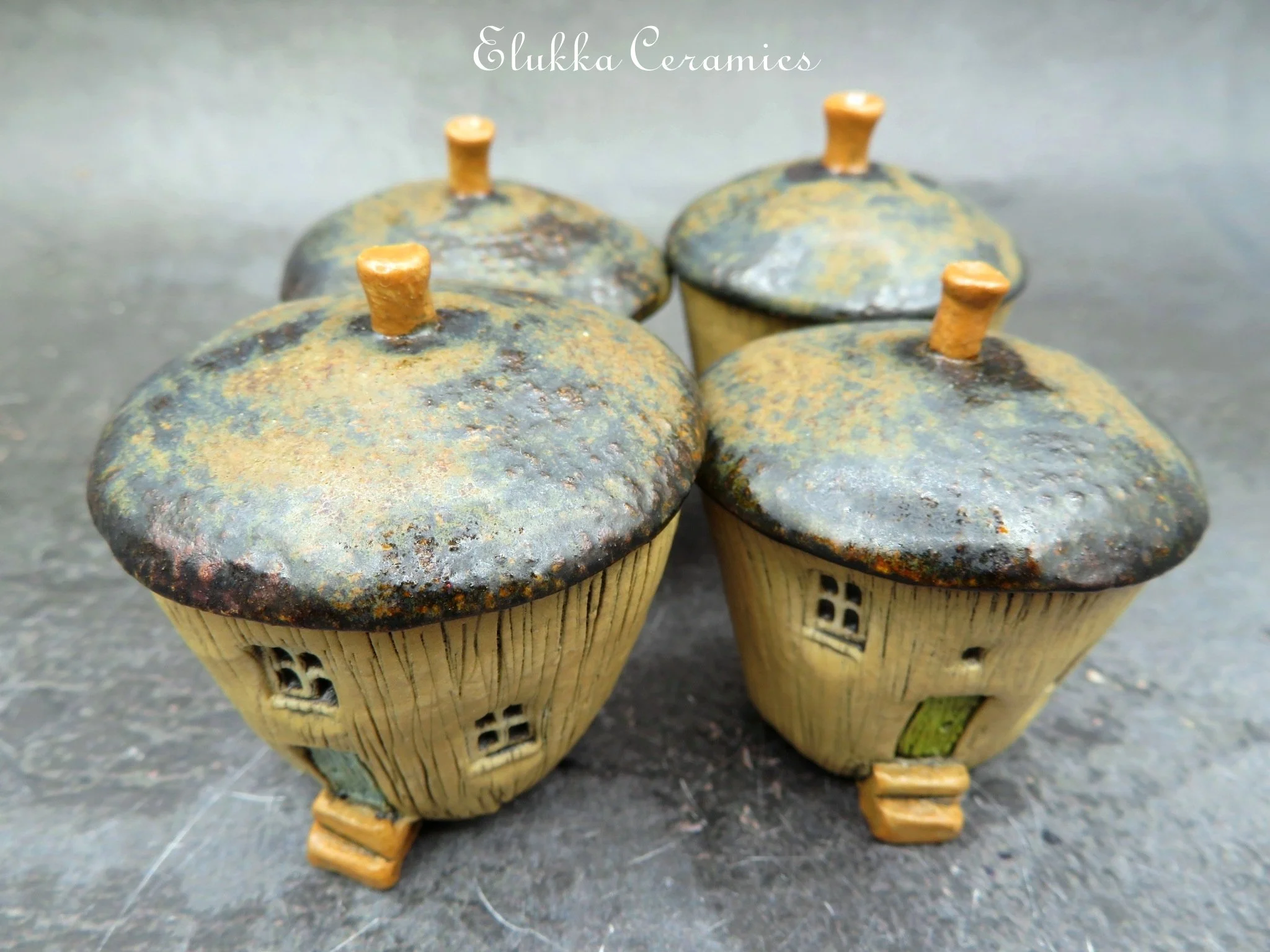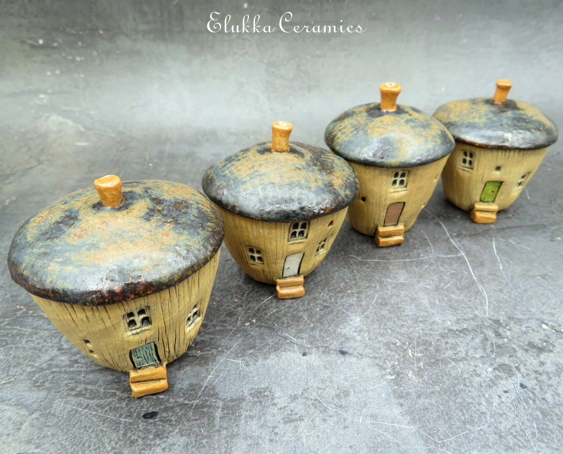 Pumpkin Cottage #6...Large Ceramic Incense Burner House by elukka