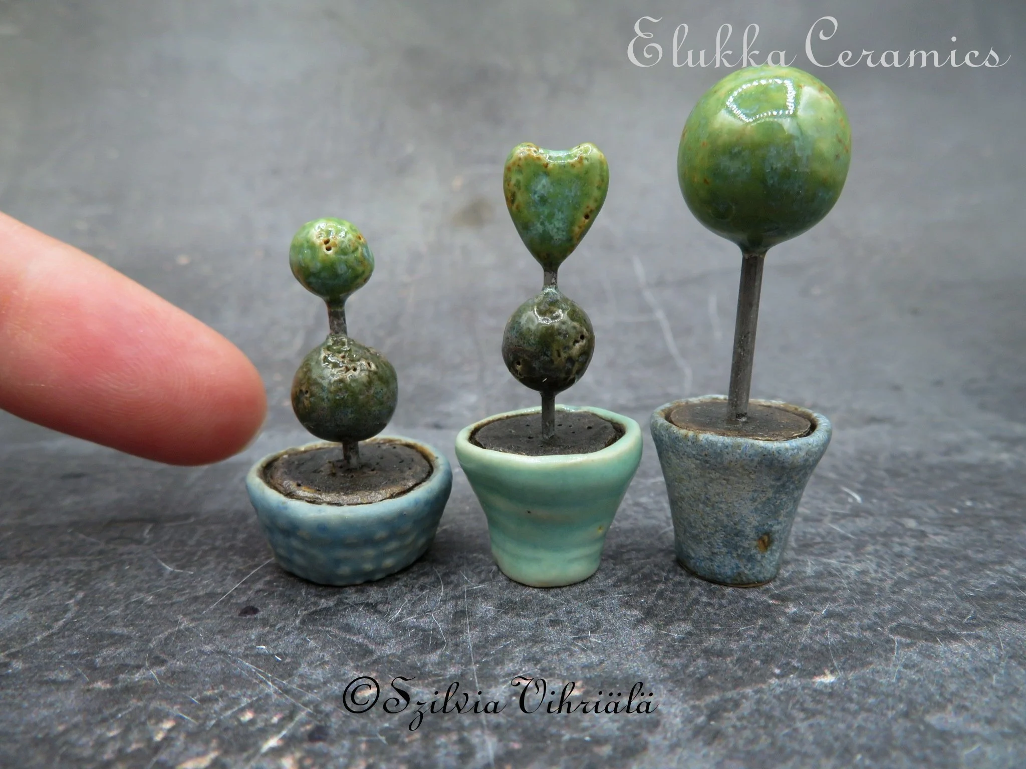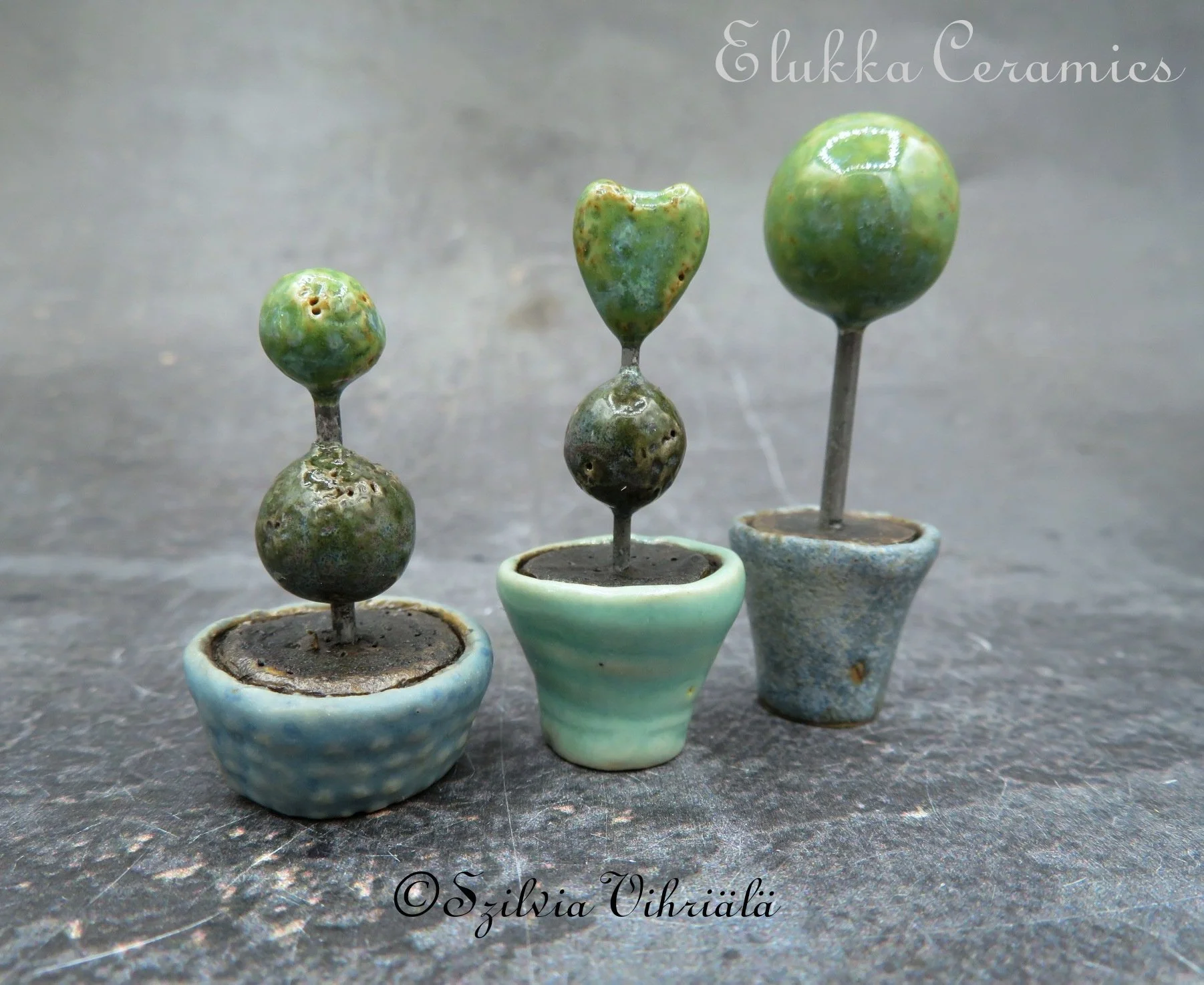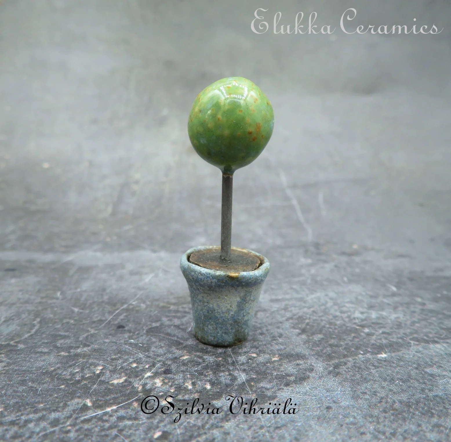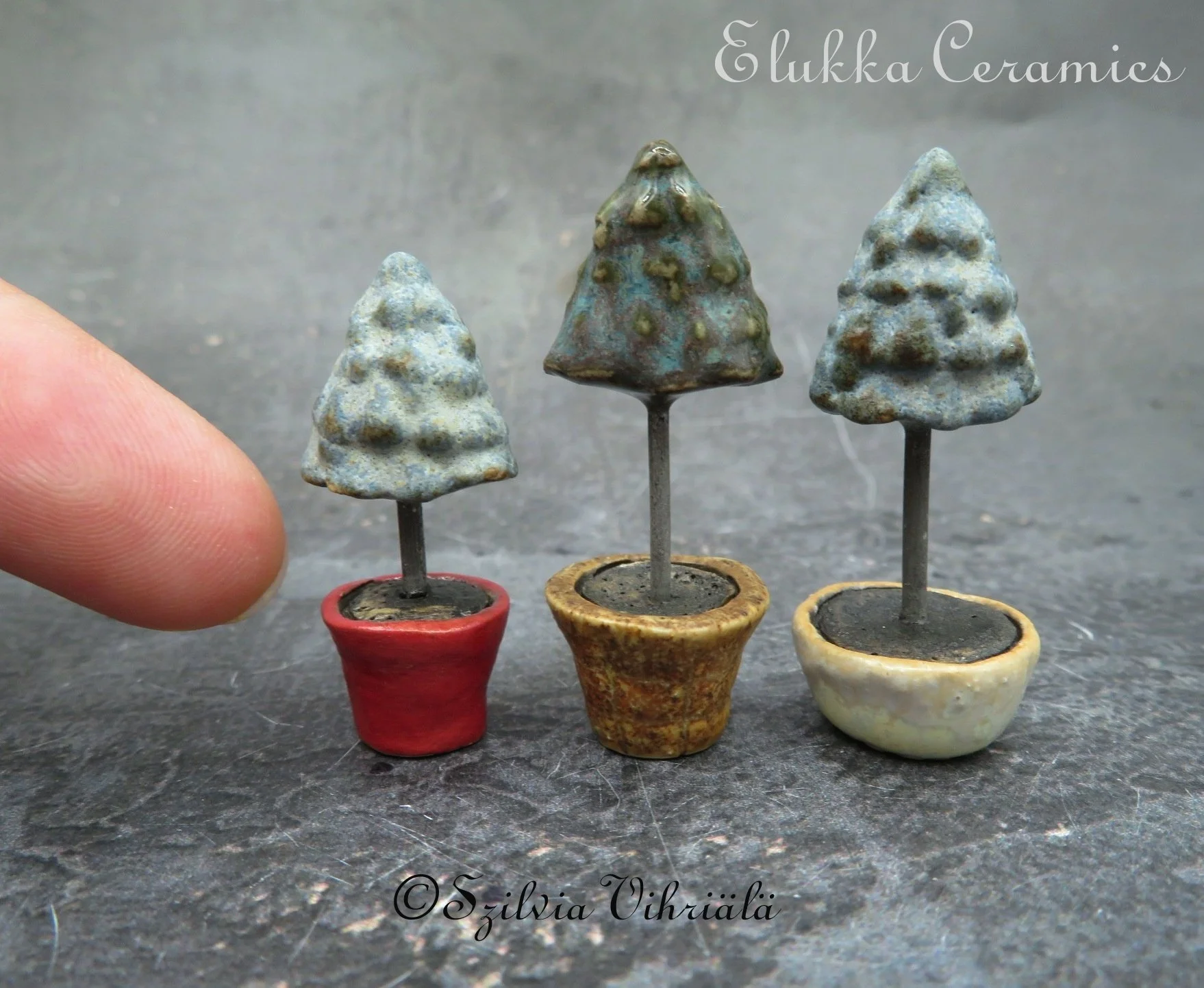 Turquoise Fantasy Shrub in Bonsai Pot...Collectible TINY Ceramic Flower by elukka