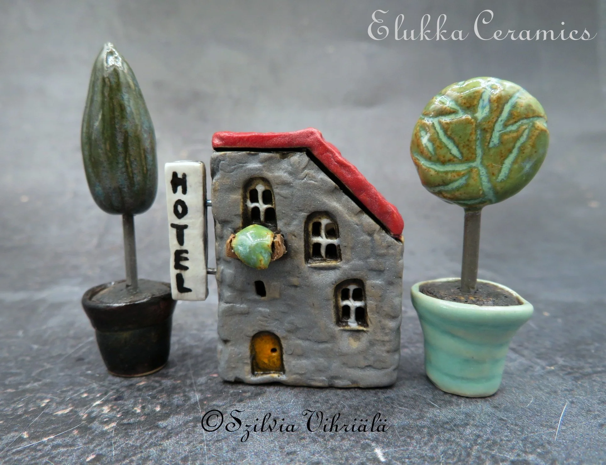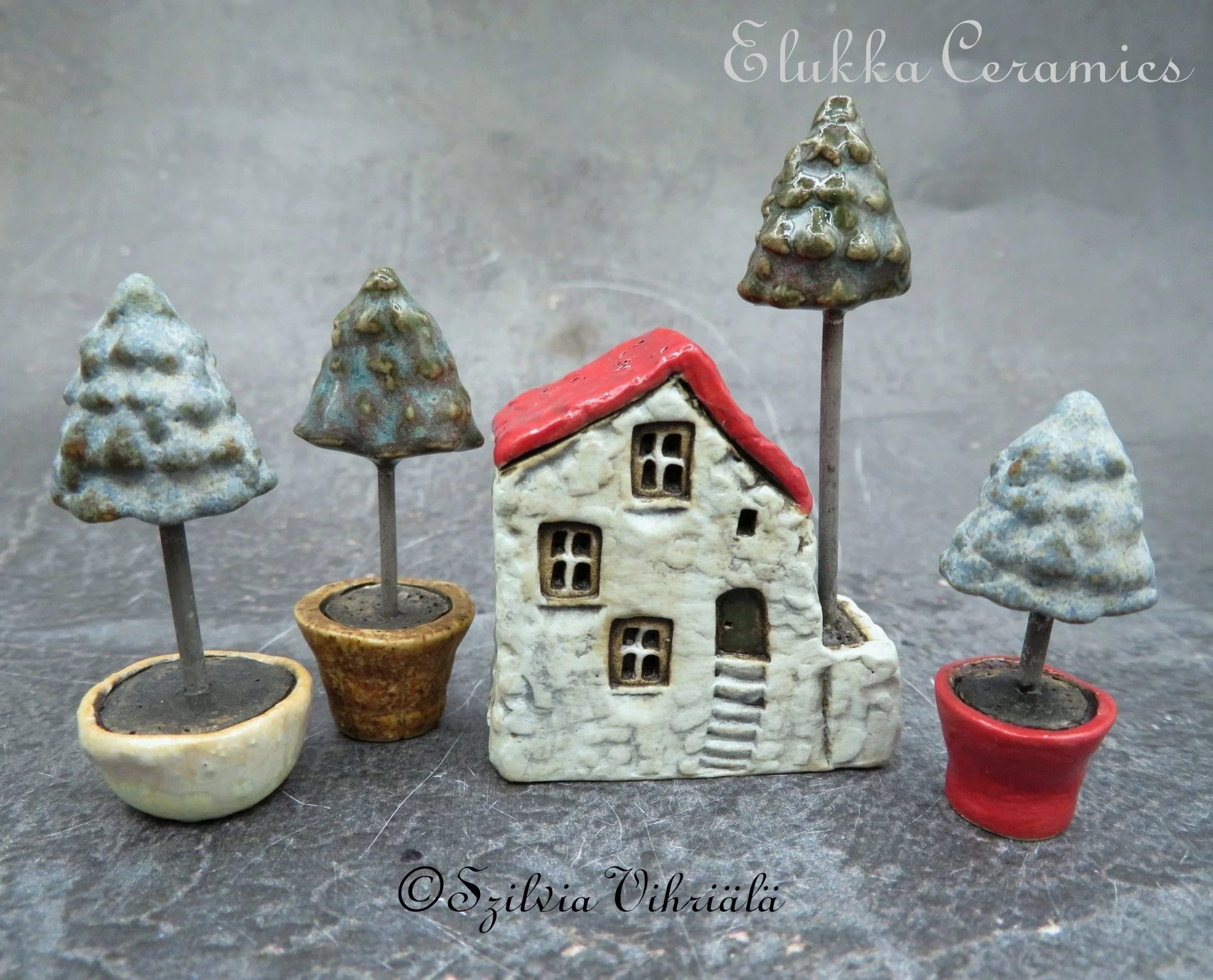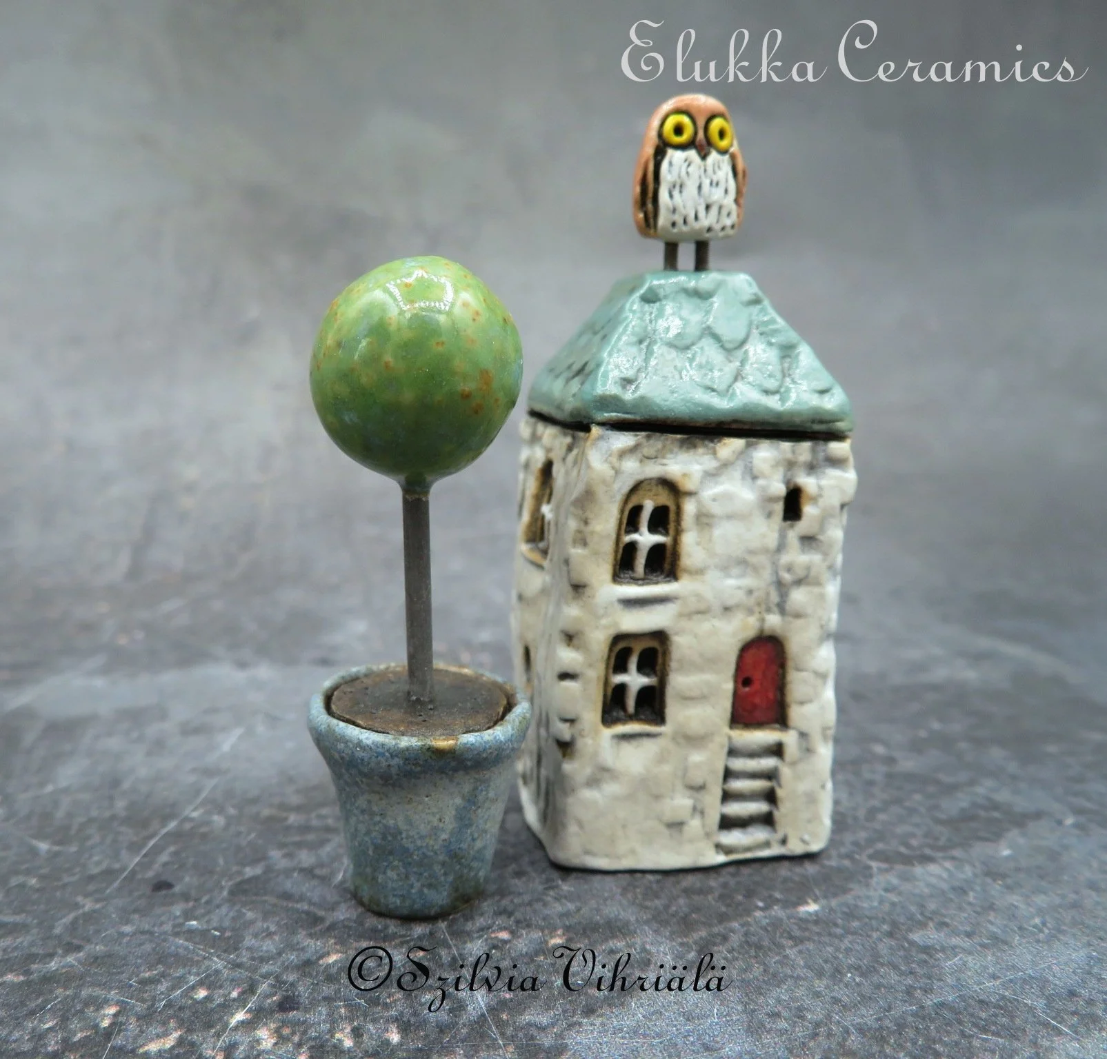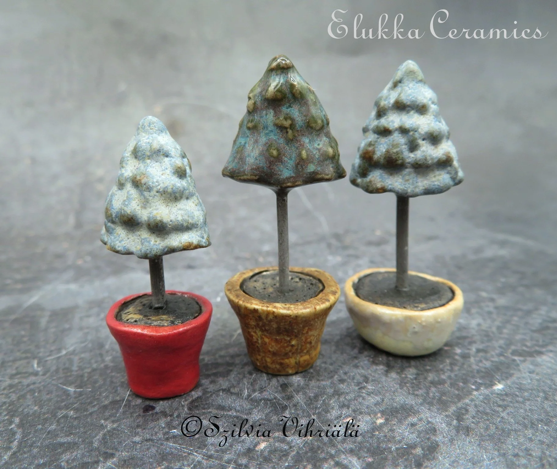 Turquoise Fantasy Shrub in Bonsai Pot...Collectible TINY Ceramic Flower by elukka