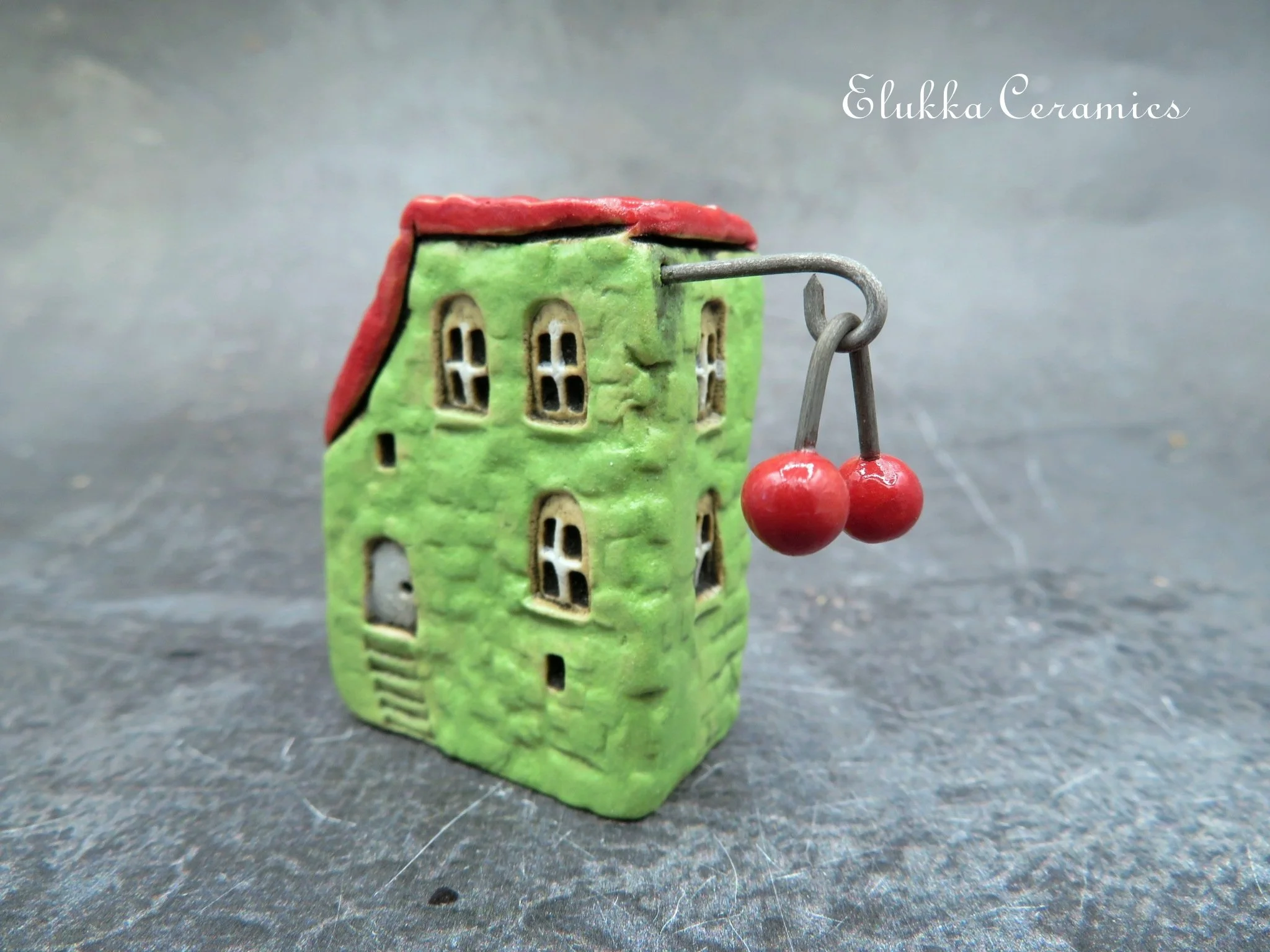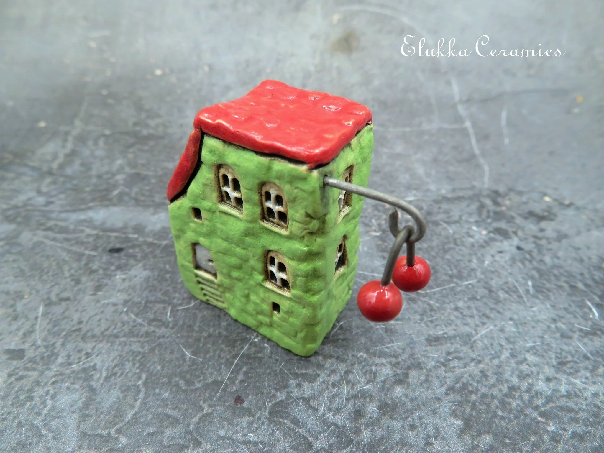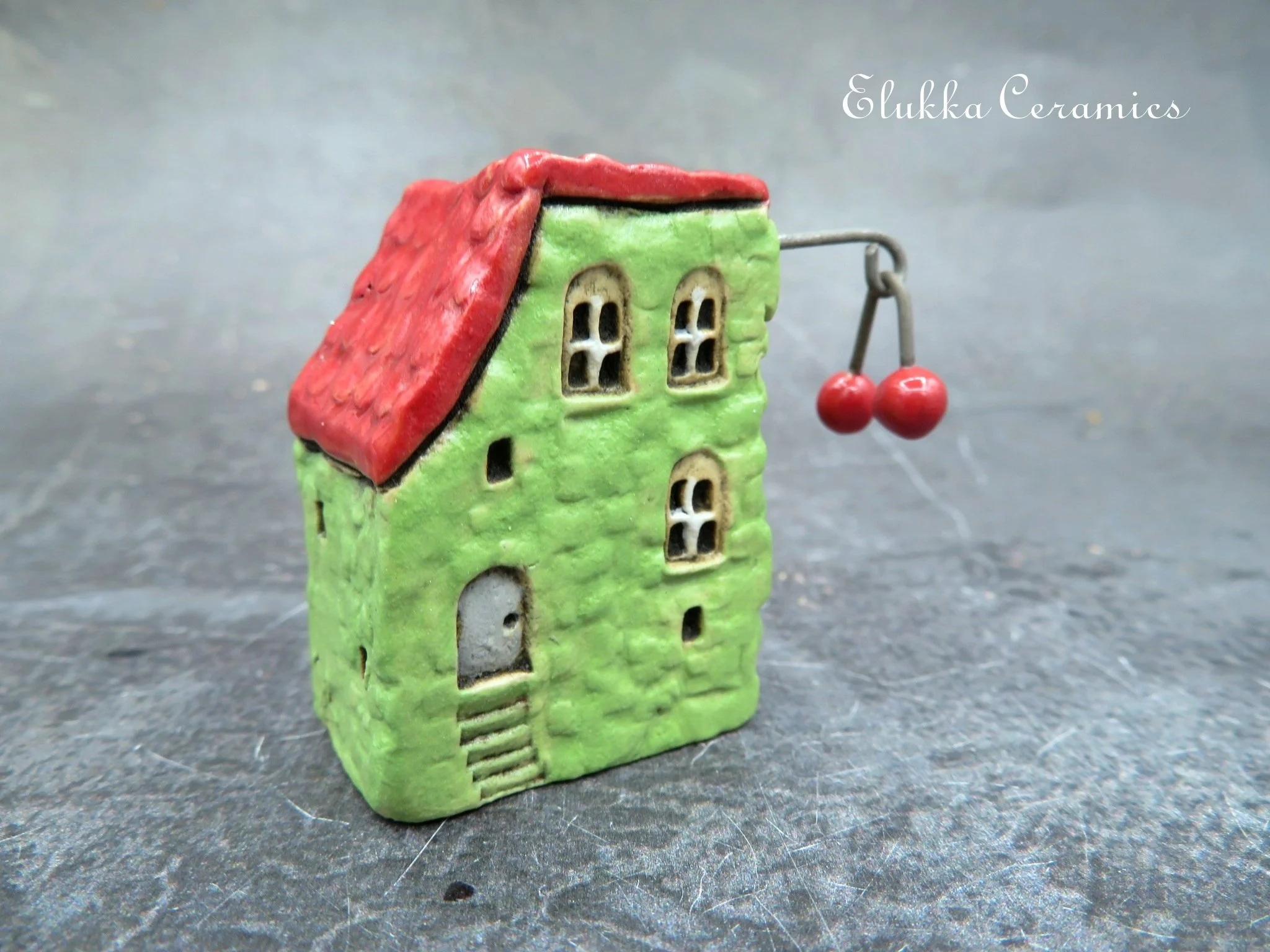 This tiny ceramic house stands just 6 cm ( 2.4 inches) tall and is signed with my initials (Sz) on one side wall.