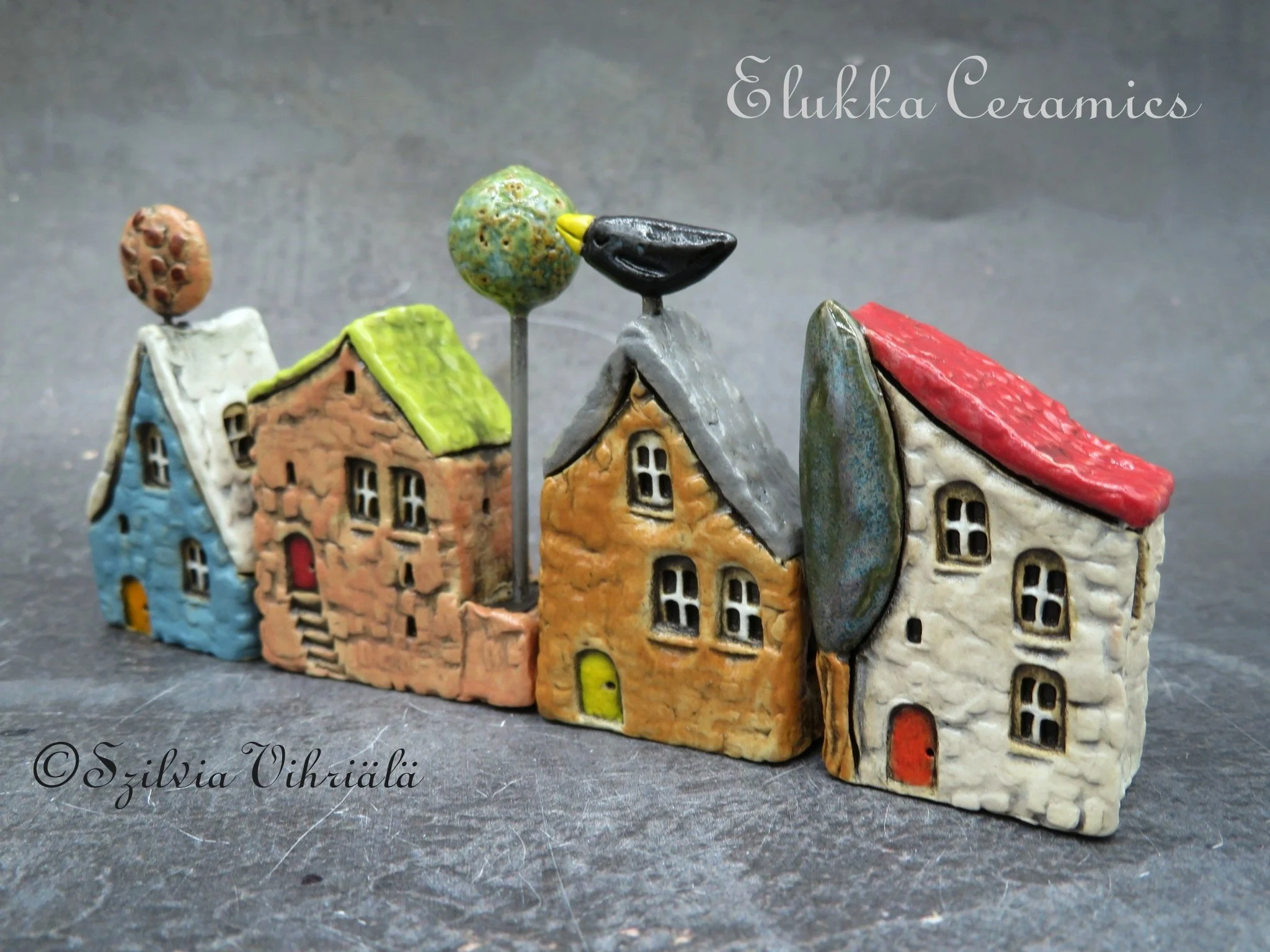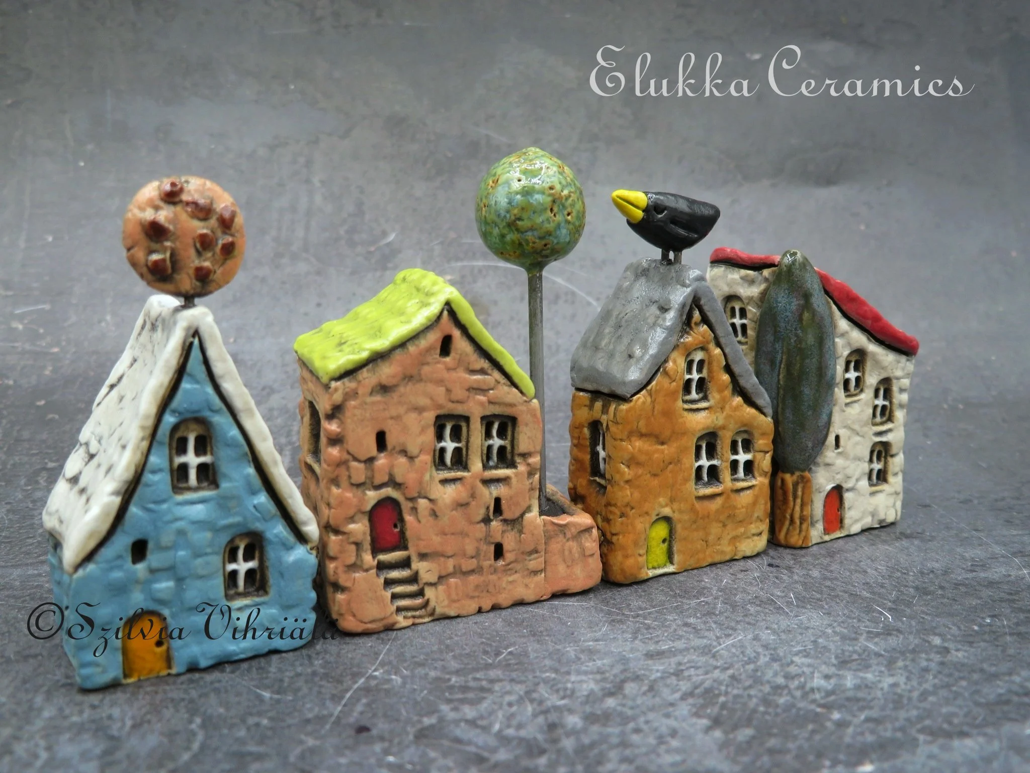 The colorful little town houses in this batch are individually handmade by me with lots of love!