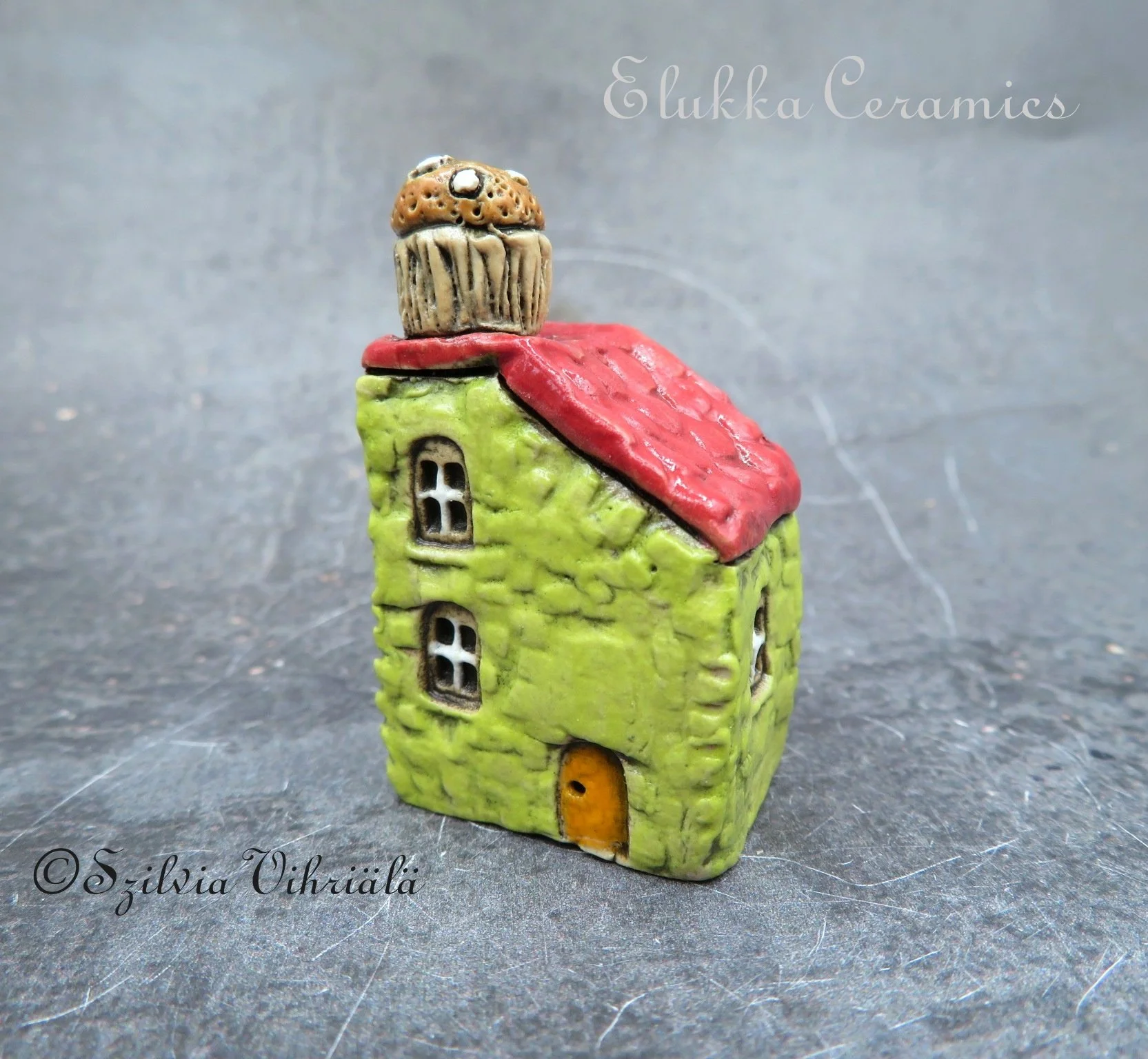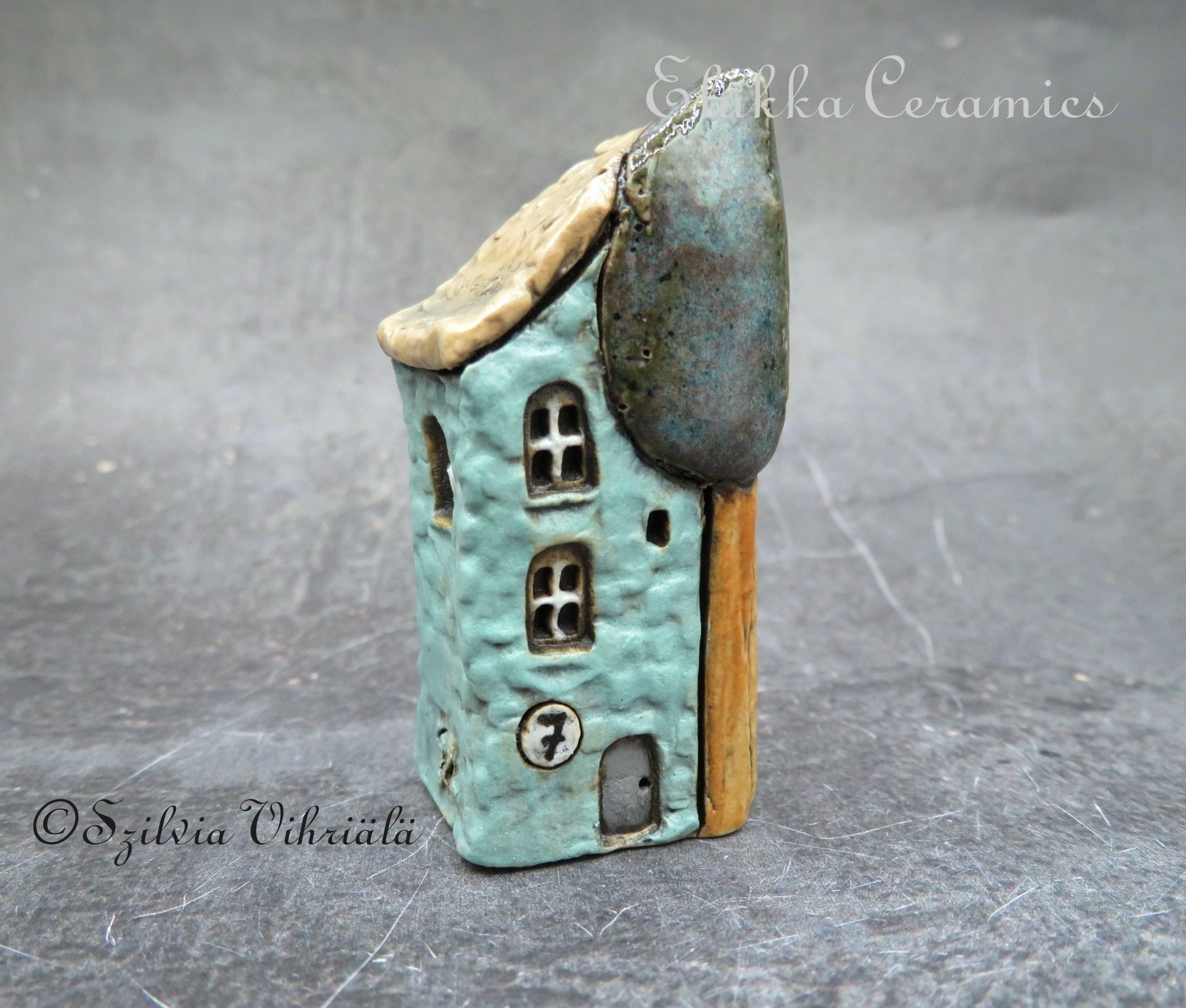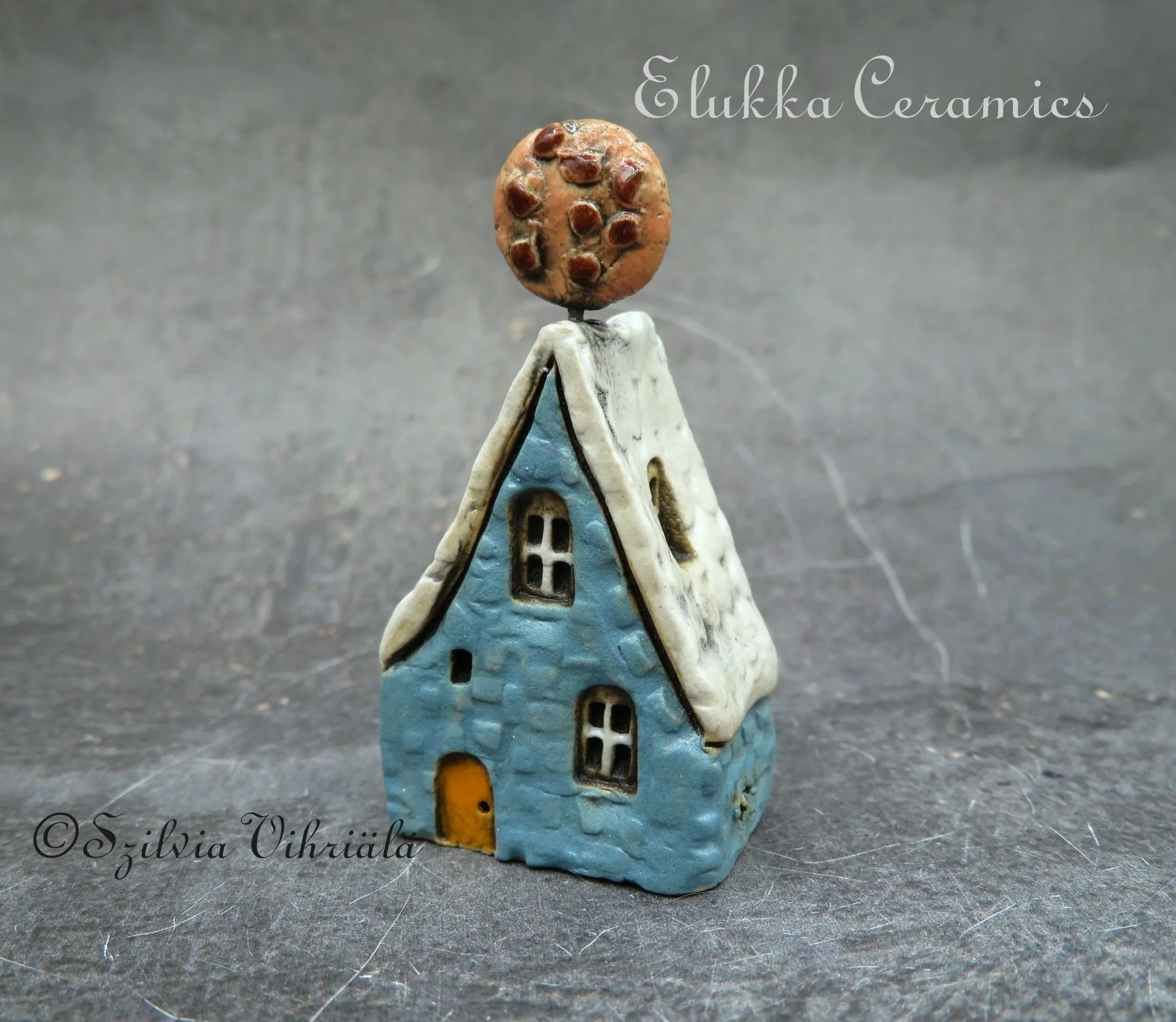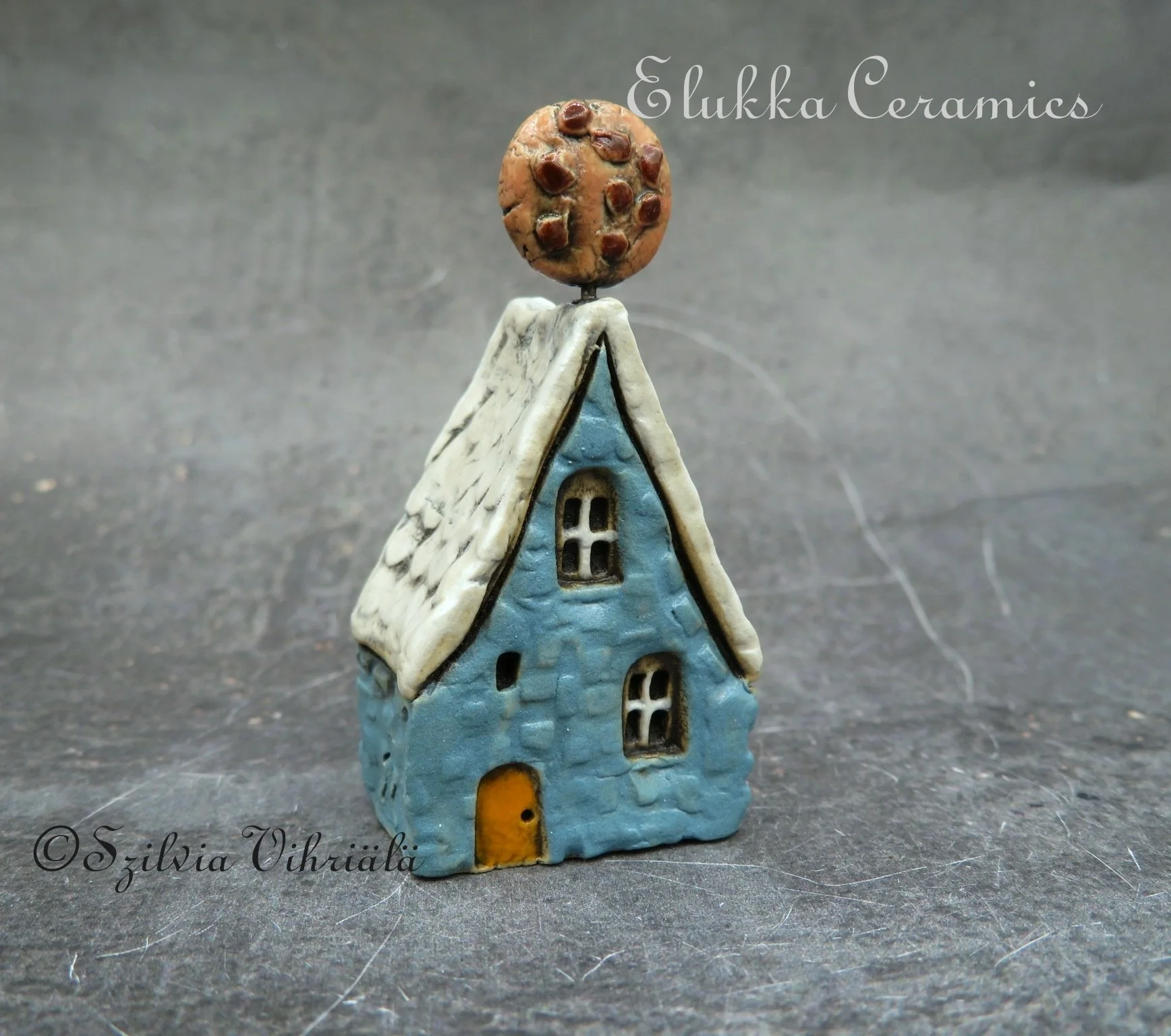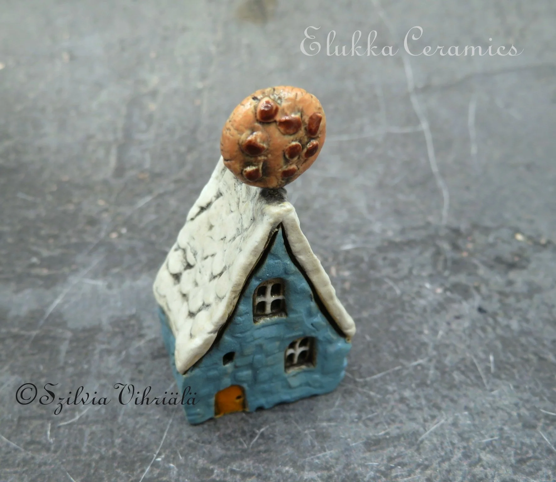 This tiny ceramic house stands just 5 cm ( 2 inches) tall and is signed with my initials (Sz) on one side wall.