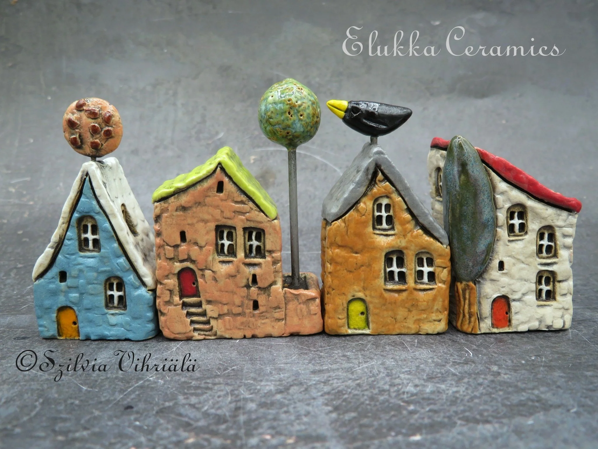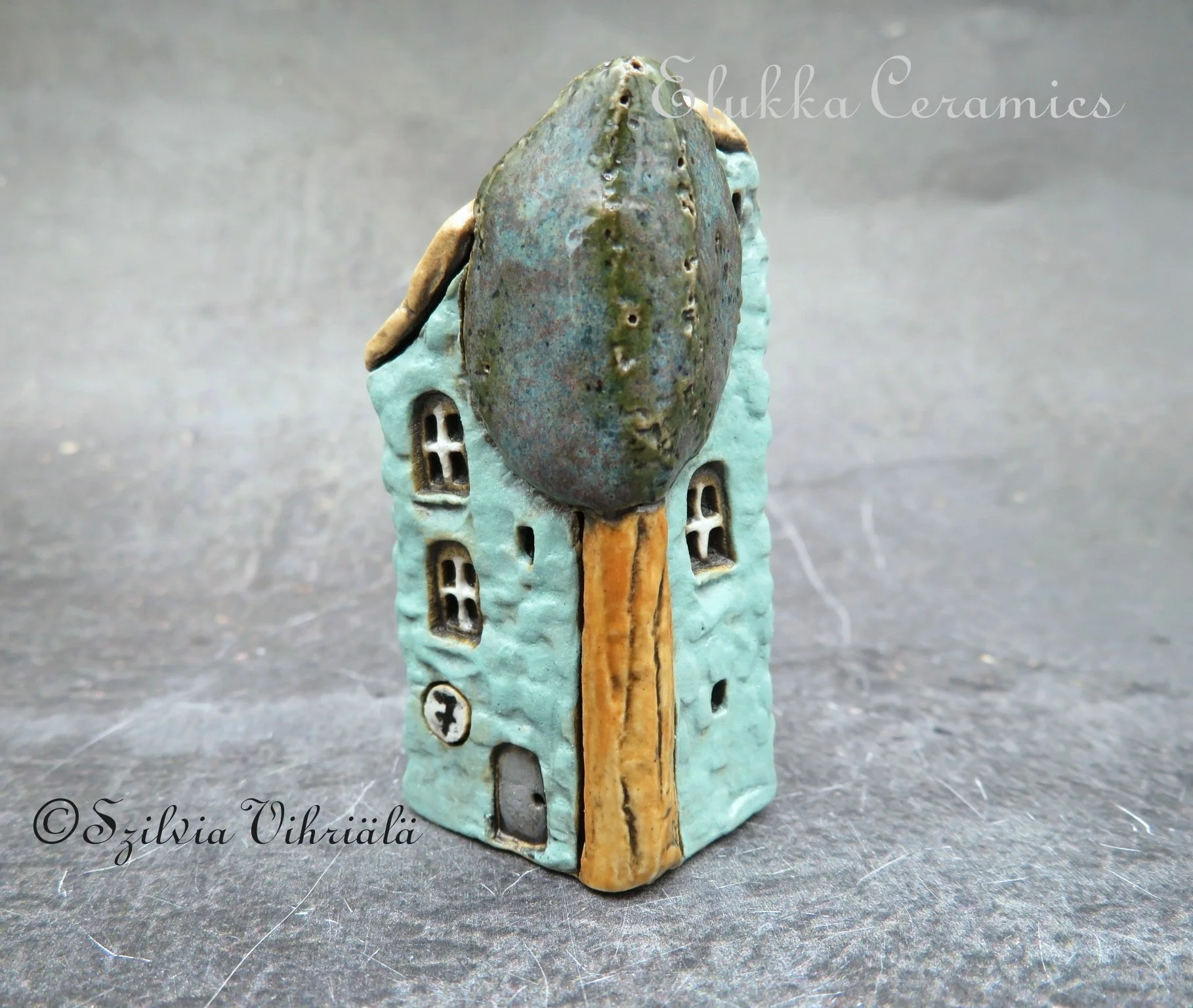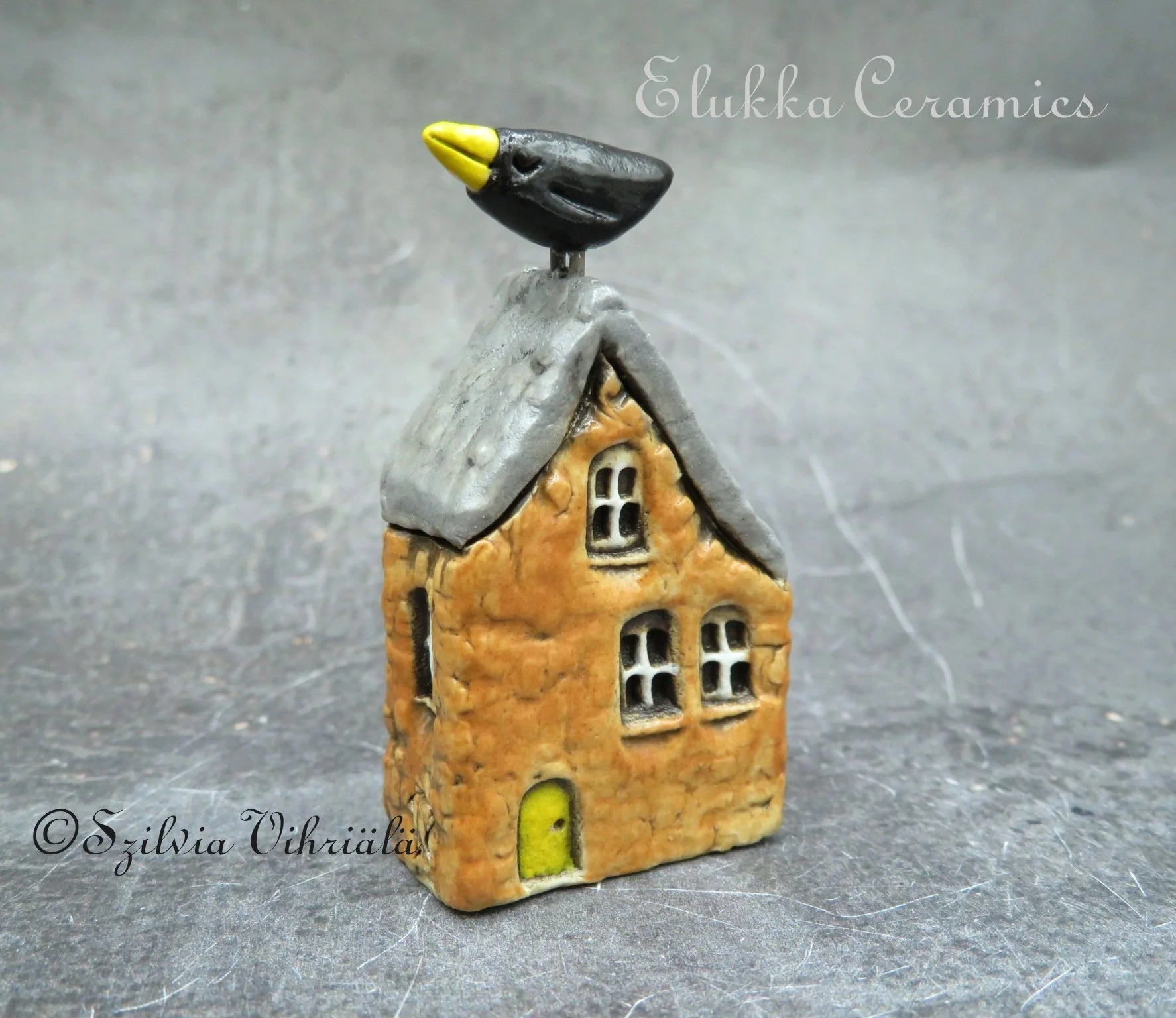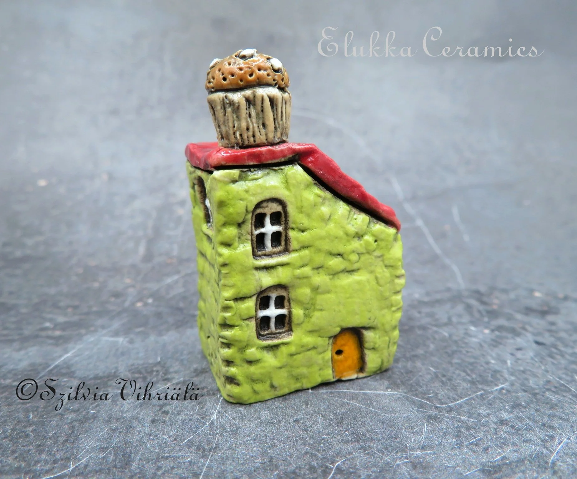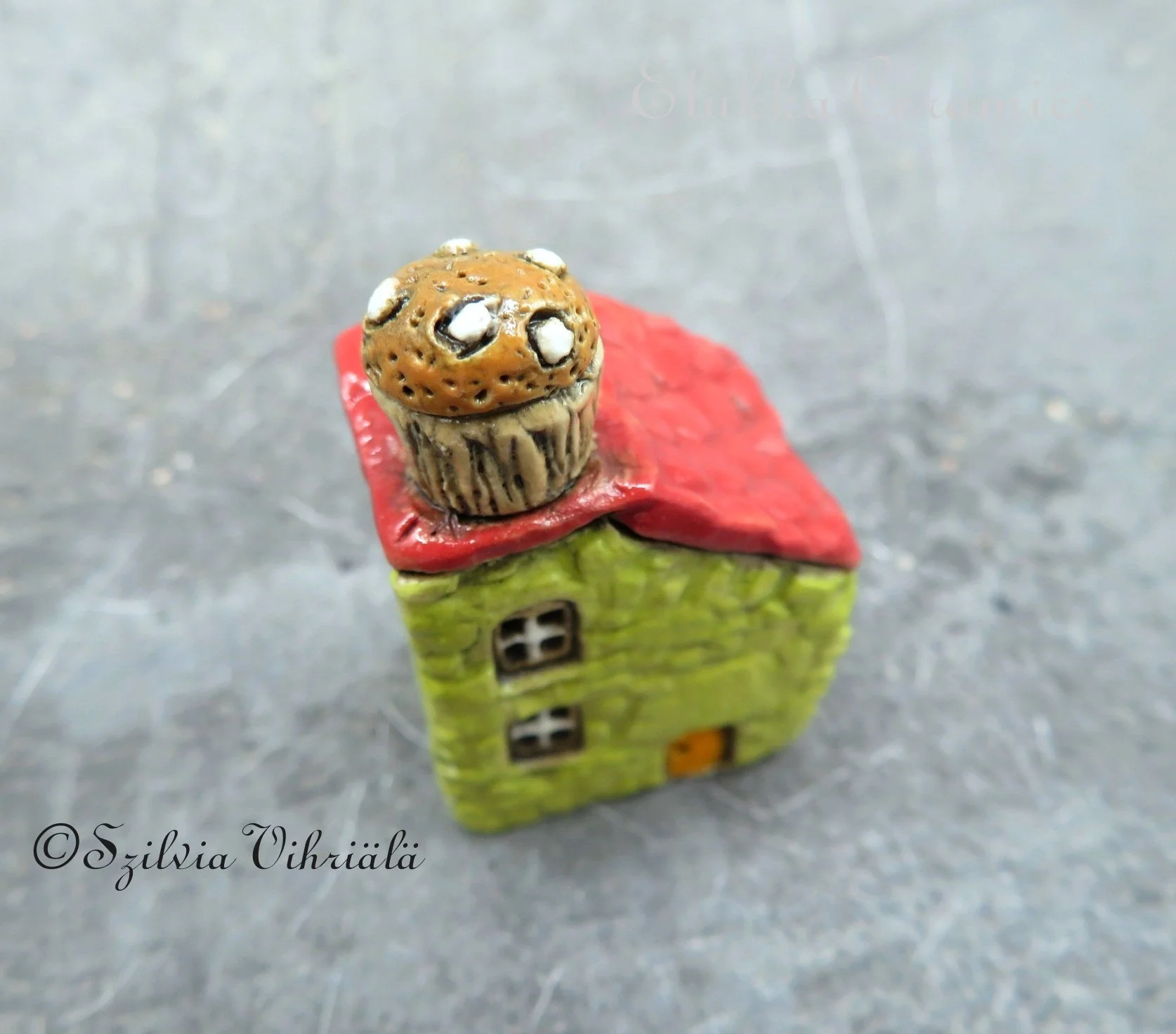 This tiny ceramic house stands just 5 cm ( 2 inches) tall and is signed with my initials (Sz) on one side wall.