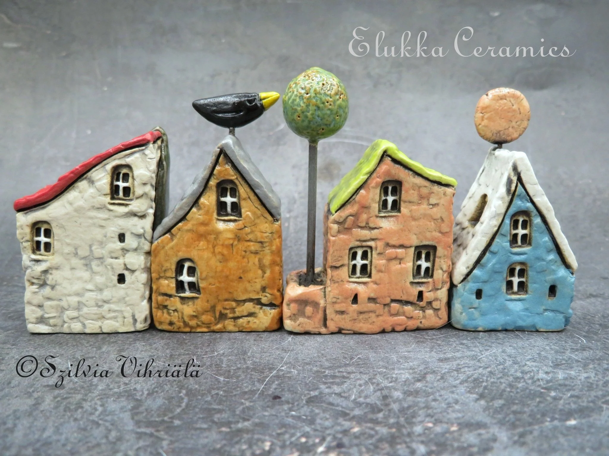 Each one is crafted from high-fired stoneware clay and fired in my giant electric kiln to at least 1240°C / 2264°F — sometimes even hotter! At those temperatures, the clay vitrifies completely, making the houses super strong and rock hard.