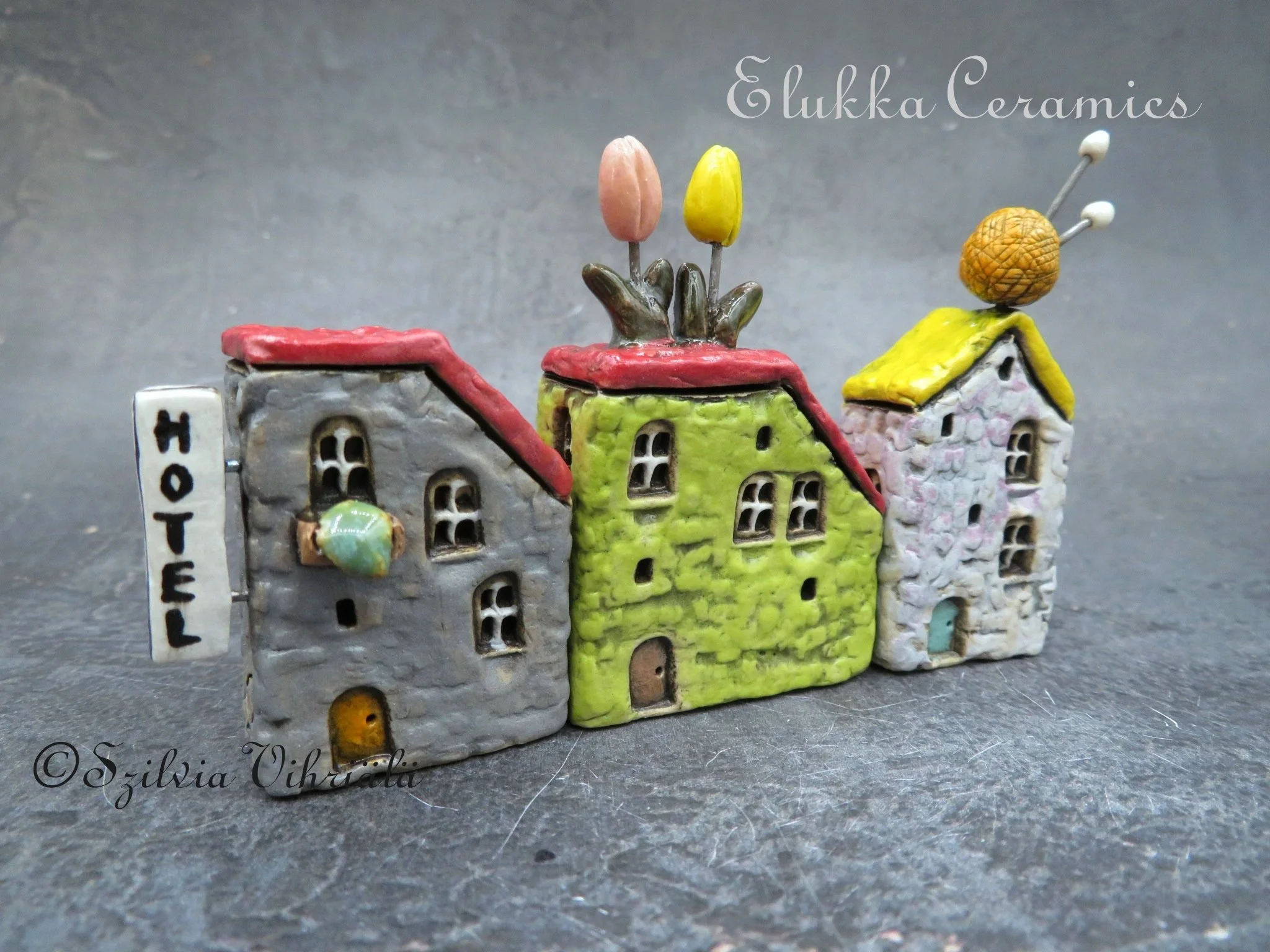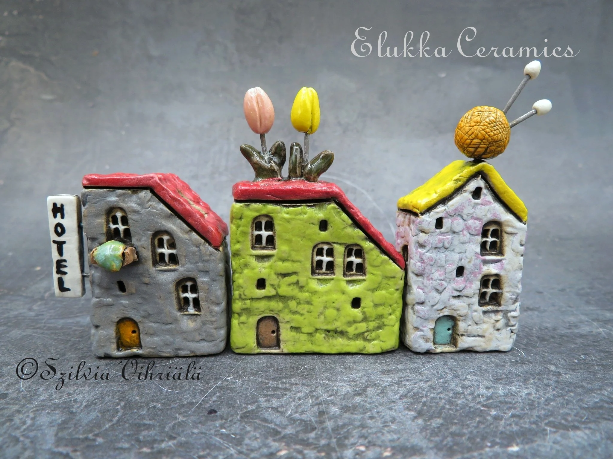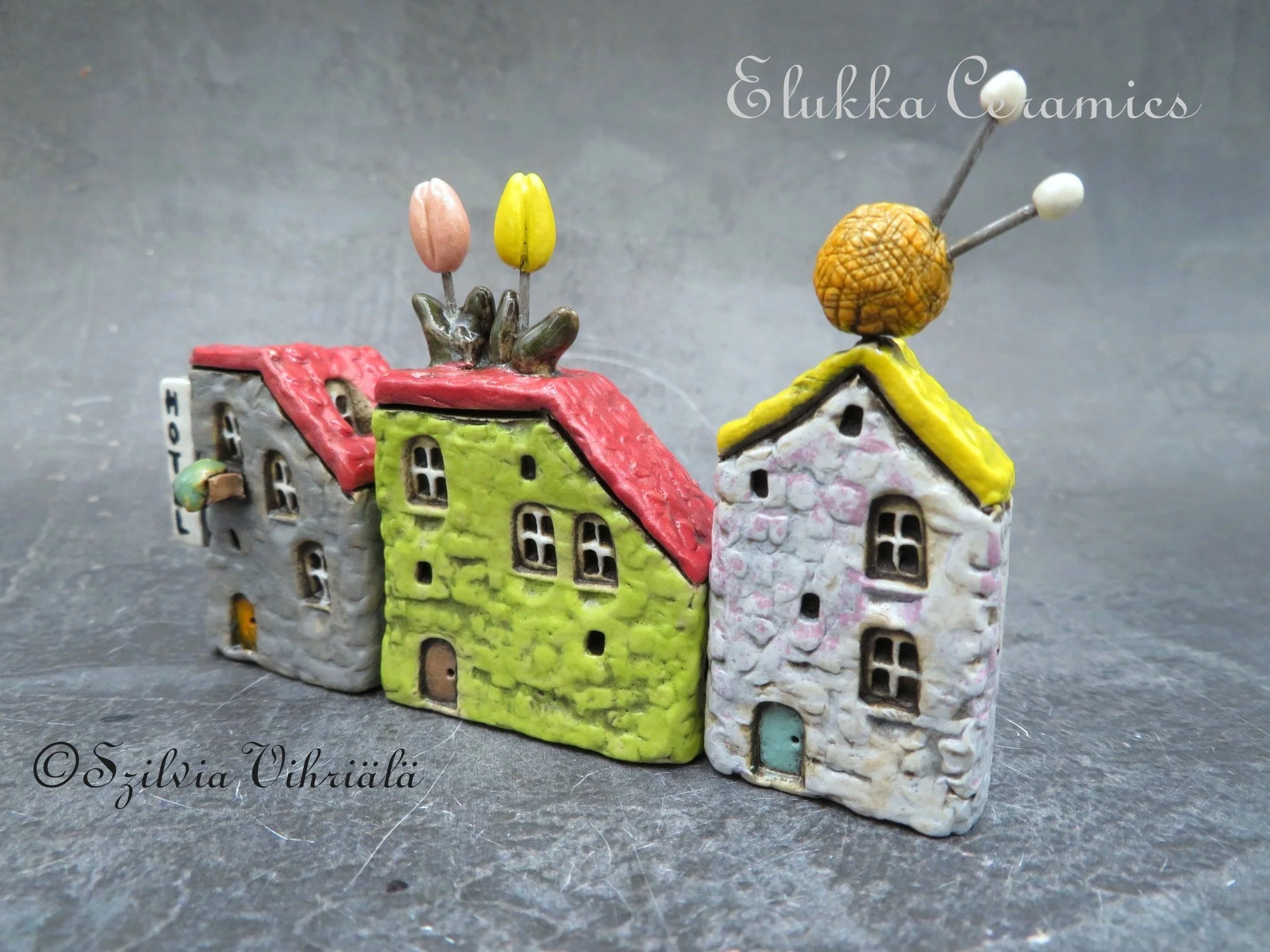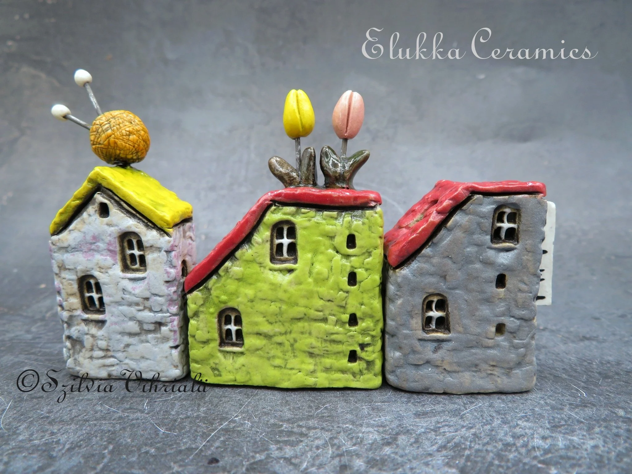 The colorful little town houses in this batch are individually handmade by me with lots of love!
