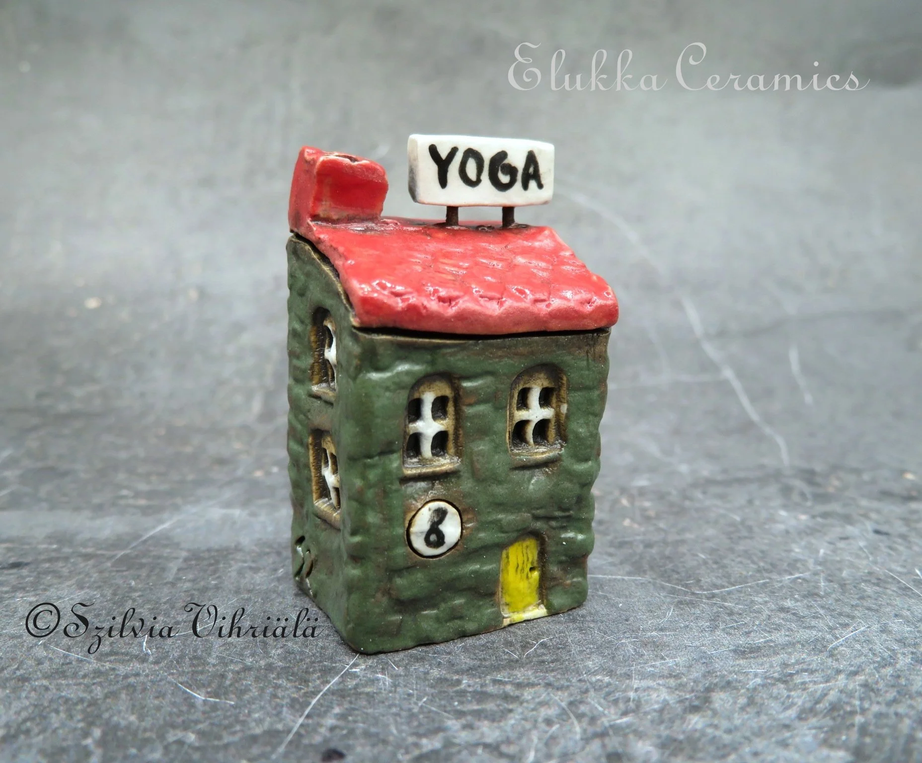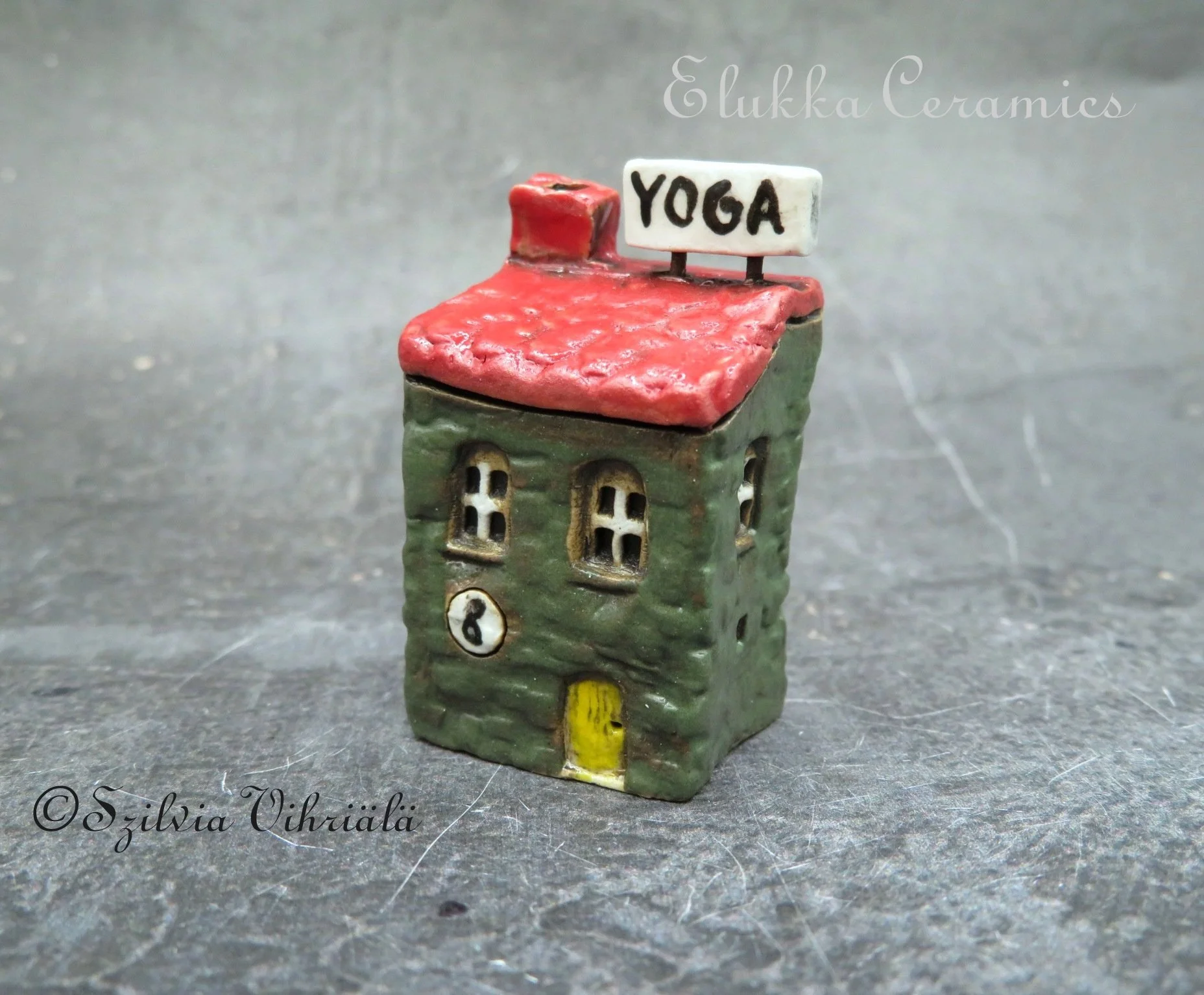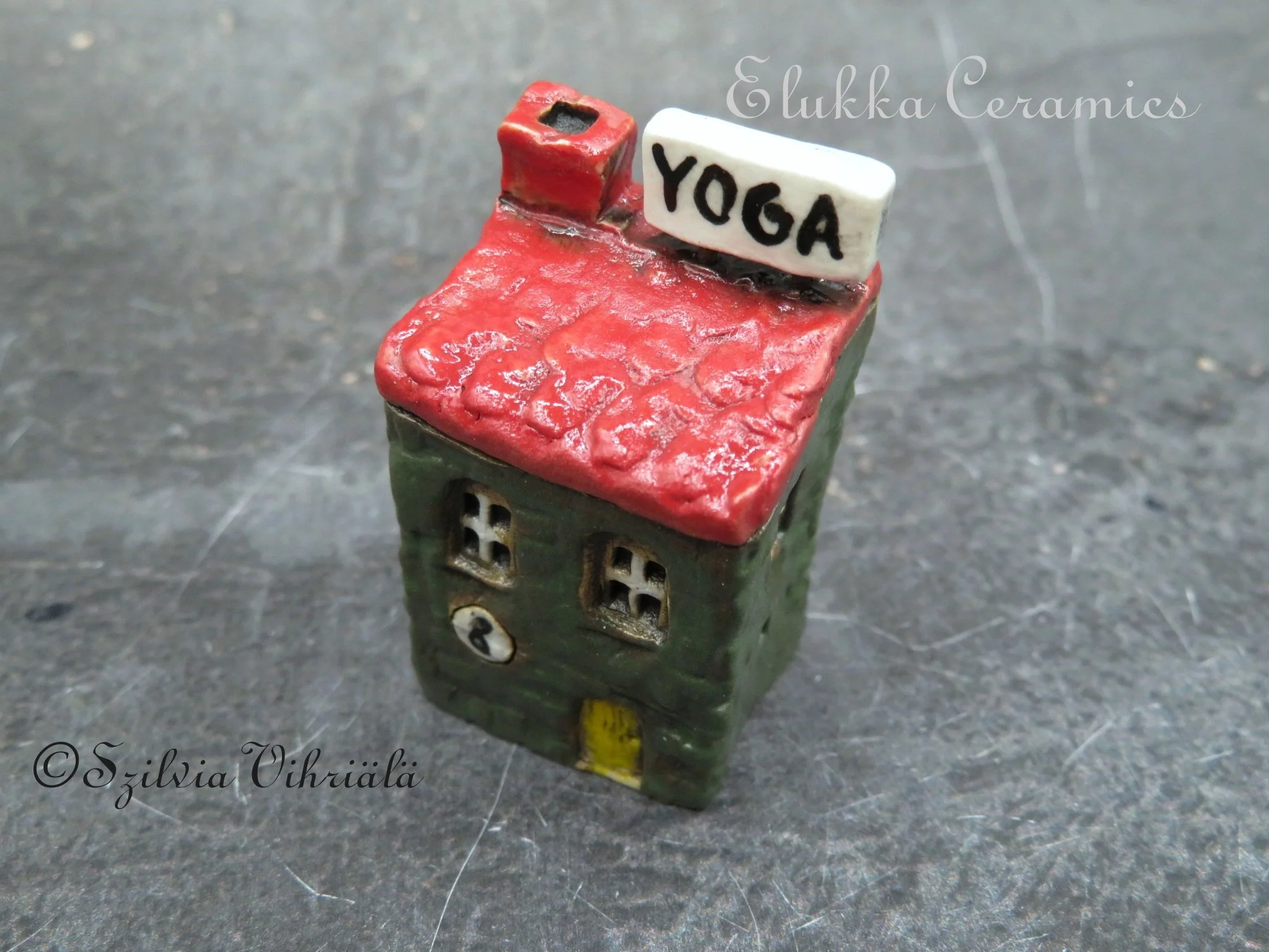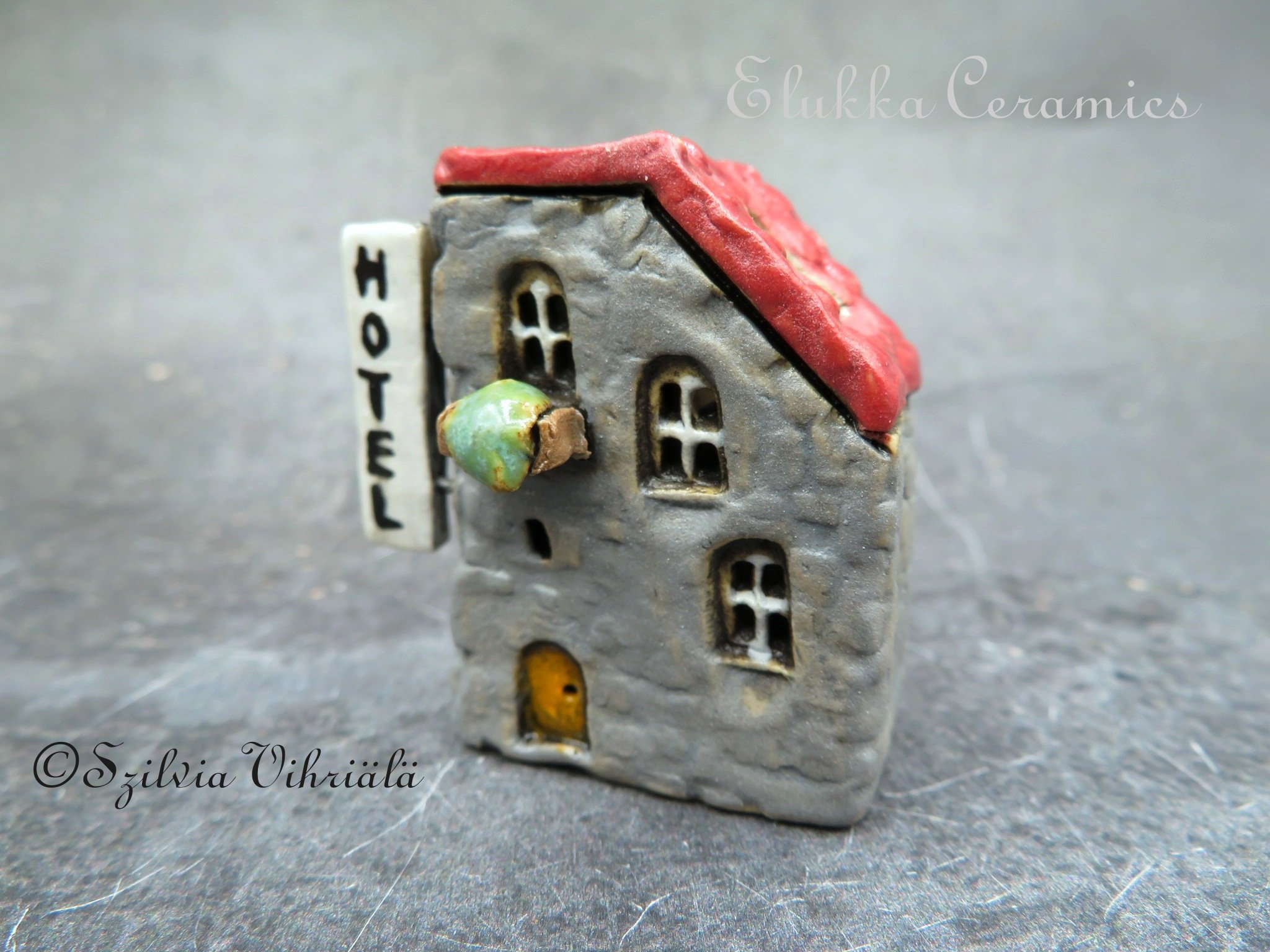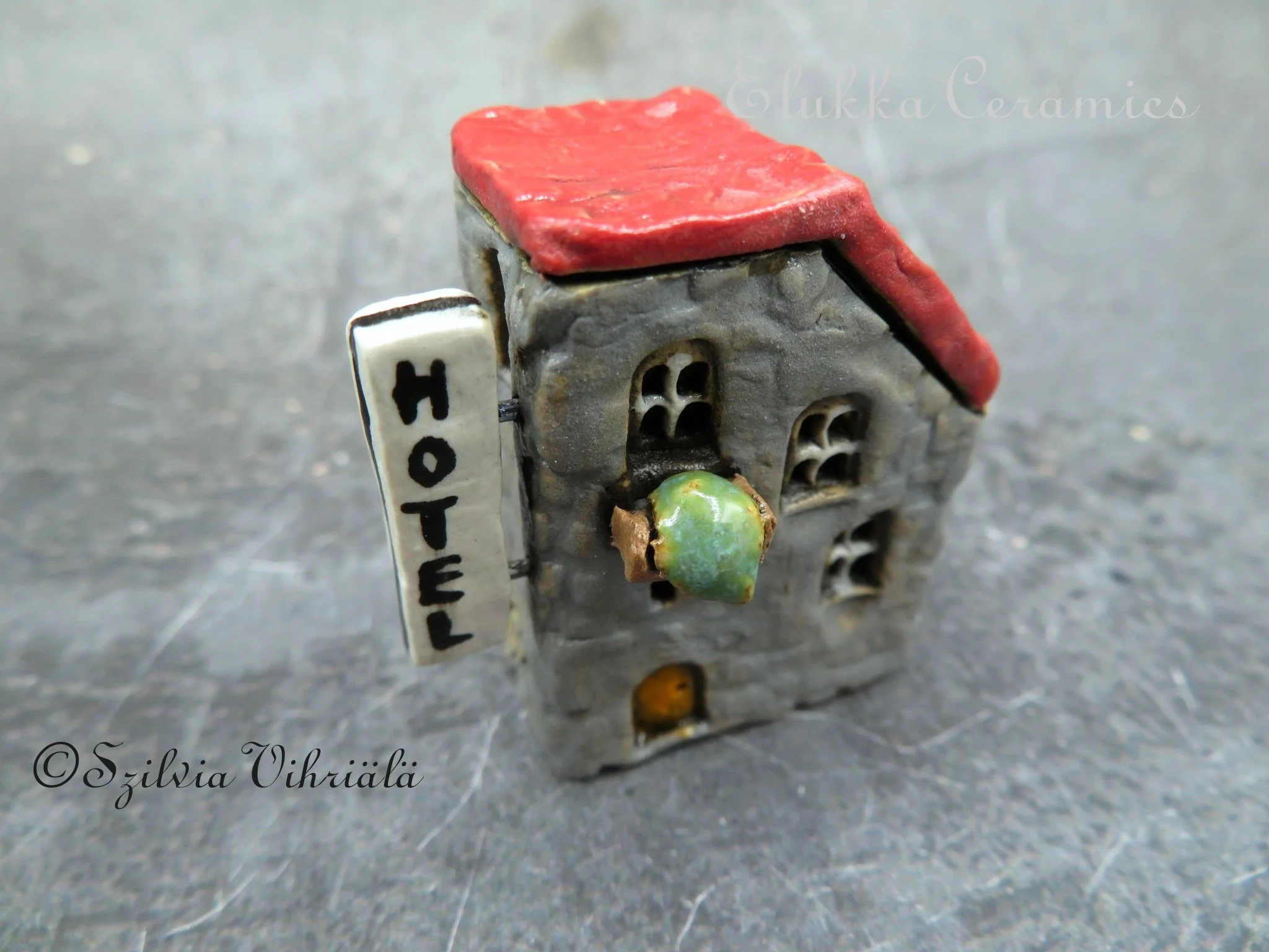 This tiny ceramic house stands just 7 cm ( 2.8 inches) tall and is signed with my initials (Sz) on one side wall.
