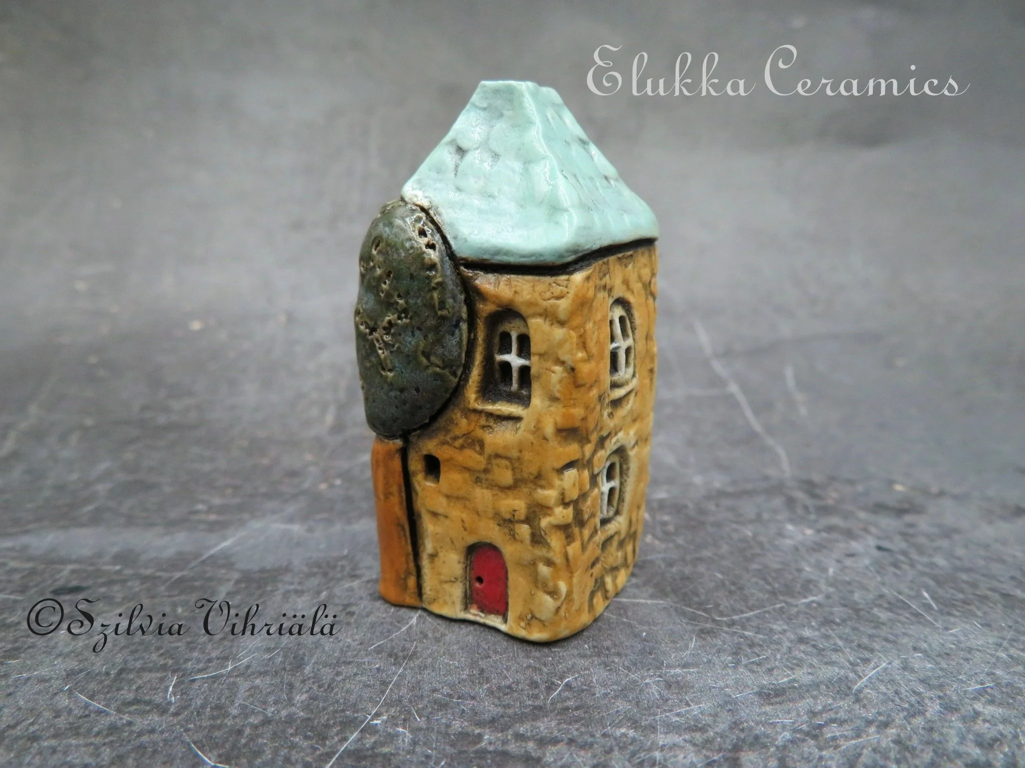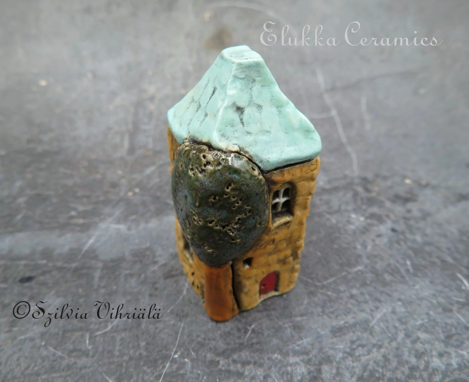 This tiny ceramic house stands just 4.5 cm ( 1.8 inches) tall and is signed with my initials (Sz) on one side wall.