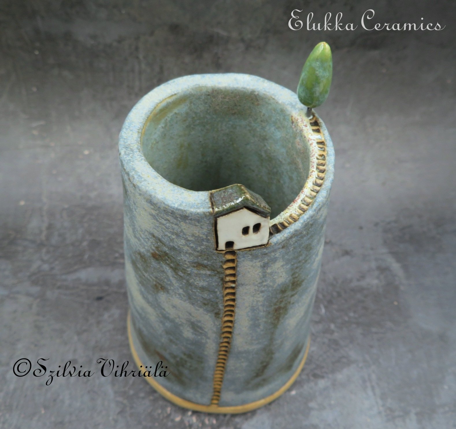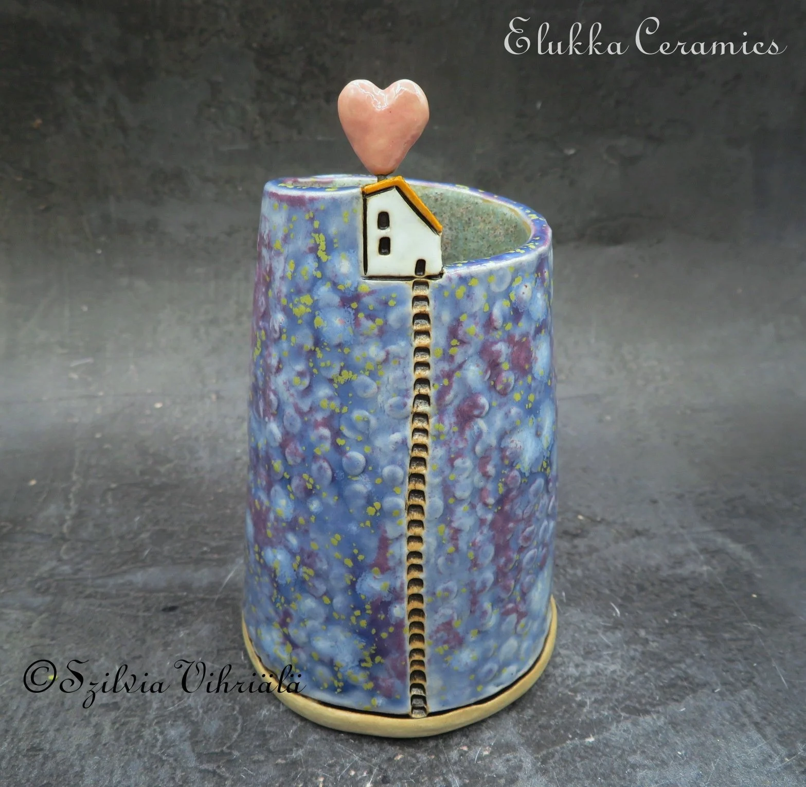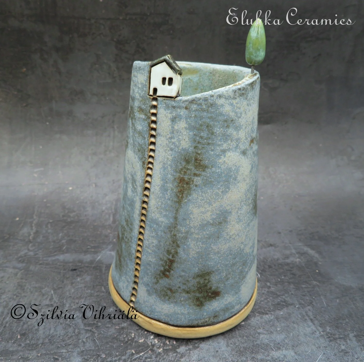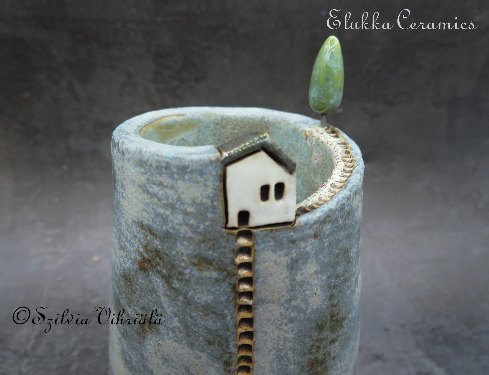 Add a touch of storybook charm to your home with this handcrafted miniature ceramic house vase.