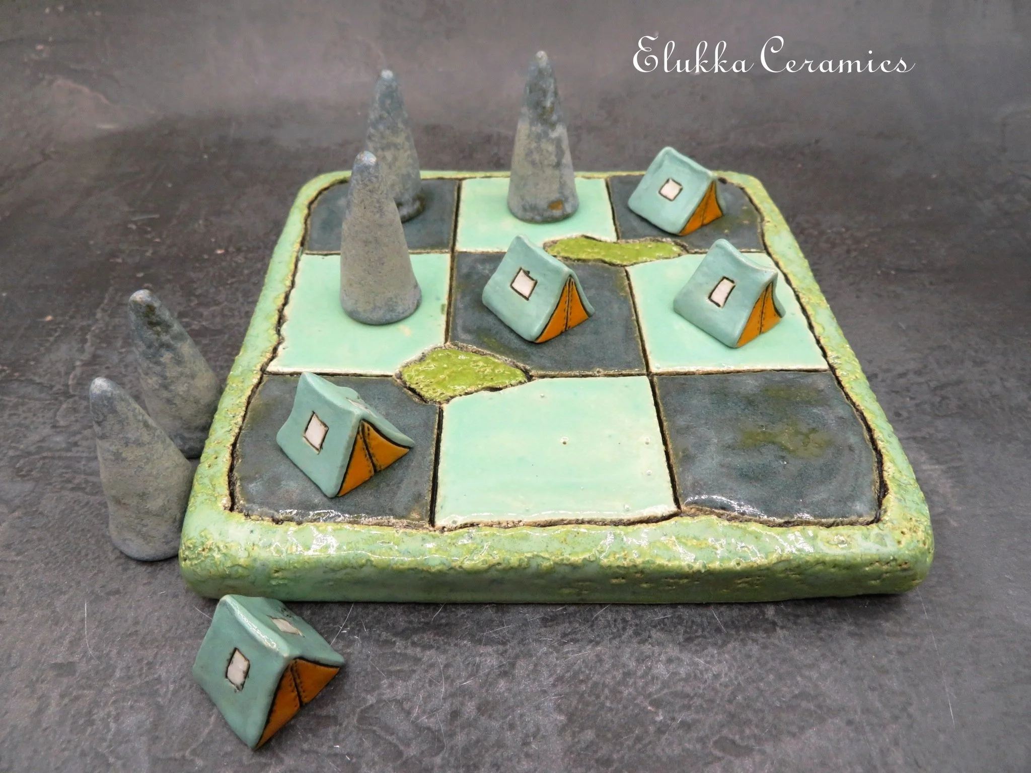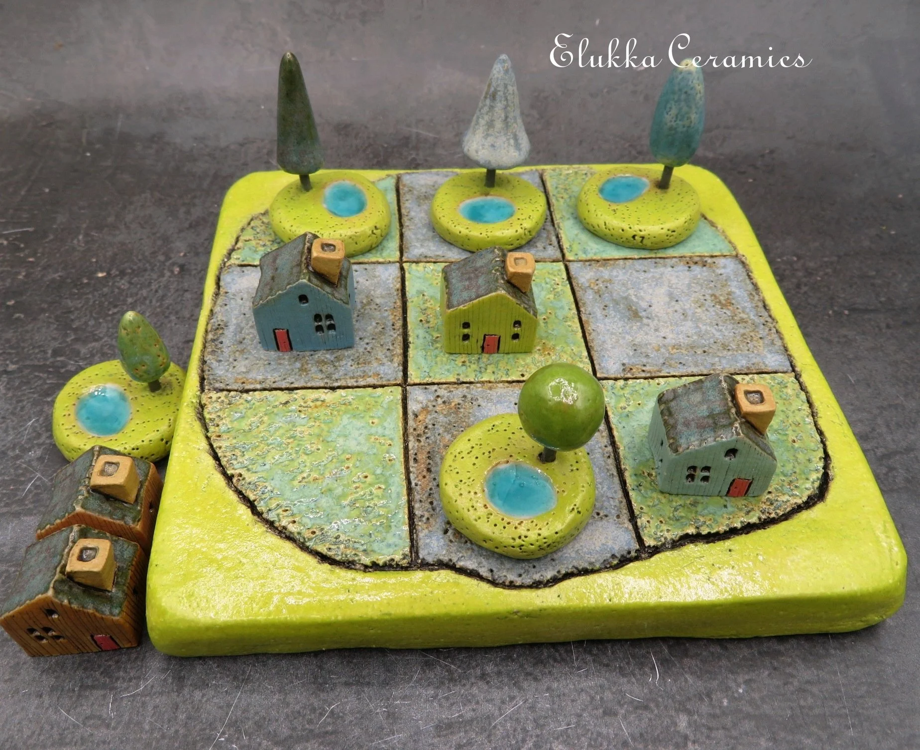 Discover the artistry of handcrafted design with this exquisite ceramic tic-tac-toe set by Elukka Ceramics.